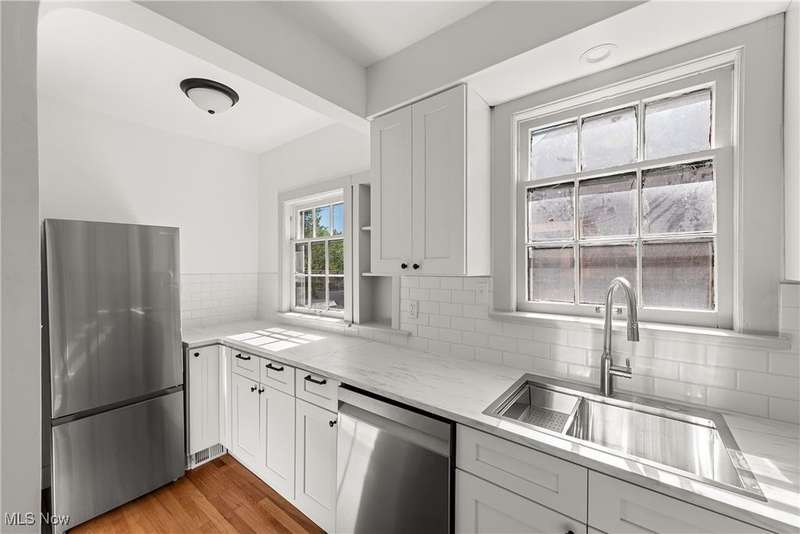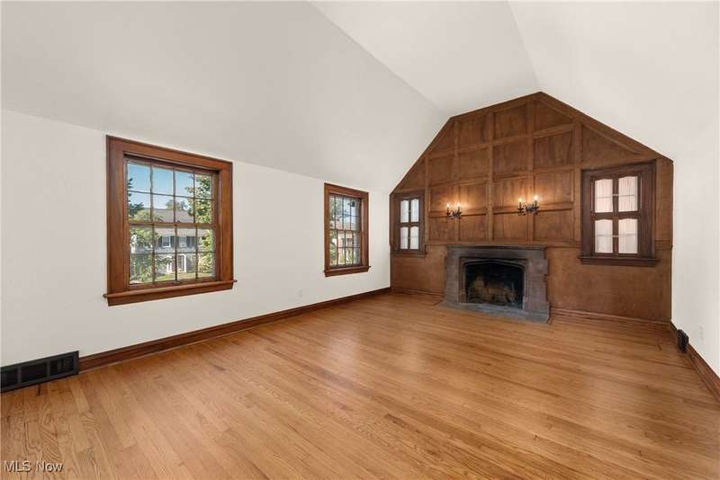 Get ready to be wowed - This amazing 2nd + 3rd floor unit is now available for immediate occupancy! As you walk in the front entrance, the vaulted ceilings, beautiful fireplace, and freshly refinished wood floors will surely catch your attention. Flowing into the dining area, the charming built-in cabinetry and wood work add so much character to this space. Next, the expansive kitchen has been lovingly updated with new cabinets and stainless steel appliances while exposing the brick chimney for a pop of color. Head down the hallway to find the upgraded bathroom with new fixtures and classic subway tile. To round out this floor, there are two nicely sized bedrooms with one featuring a walk-out to a serene balcony. Head to the 3rd floor to find the beautiful primary suite with pitched ceilings and a classically updated bathroom that will excite anyone looking for a perfect morning routine. Additionally, the wood-paneled den is perfect for any flex space needed that rounds out the 3rd floor. Take advantage of the central air during the warmer months and enjoy access to two garage spots during the colder months. This unit has its own washer and dryer in the basement, along with ample storage for holiday decorations or suitcases! Conveniently located near the Van Aken District, public transportation, restaurants, Case Western, John Carroll, Cleveland Clinic, and UH, this unit is perfect for anybody wanting a short commute to all east side amenities. Come and see all that this unit has to offer before it's gone!