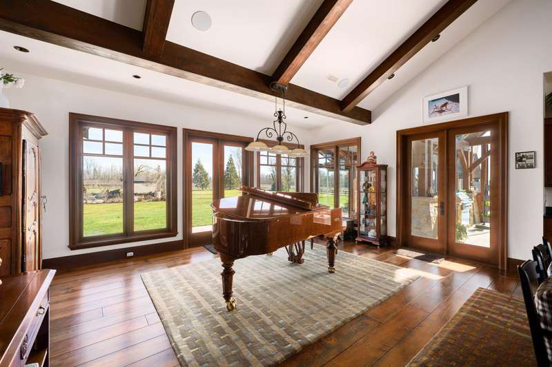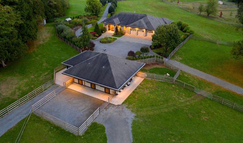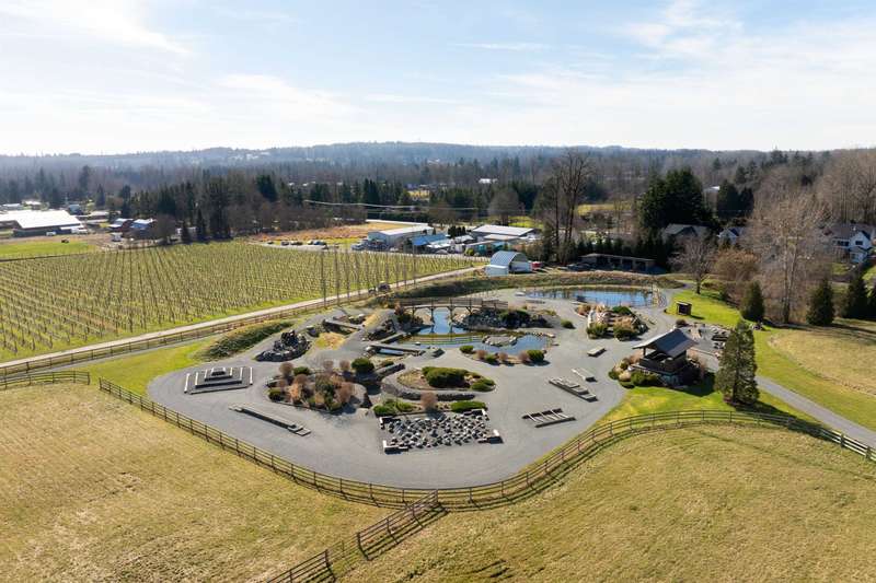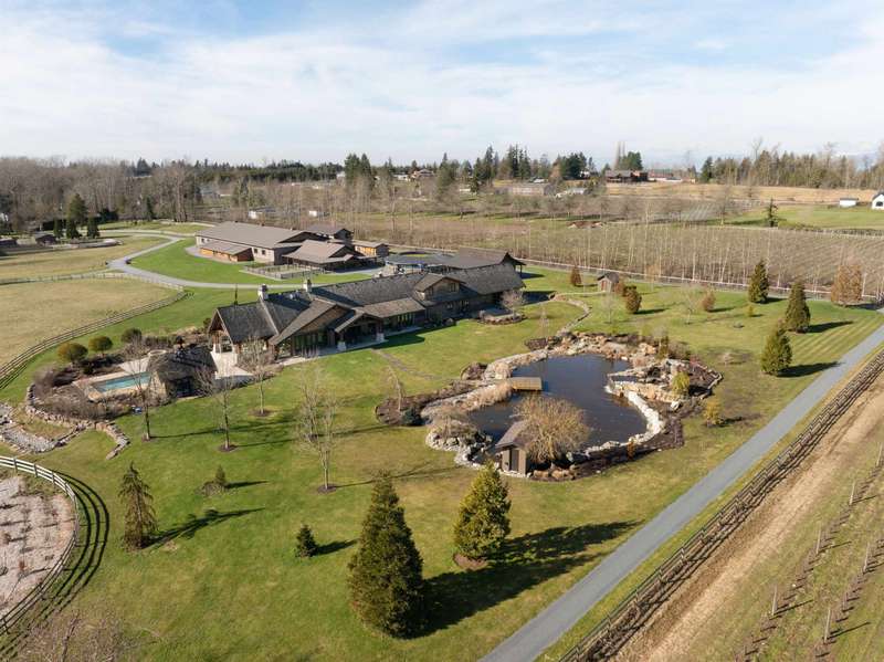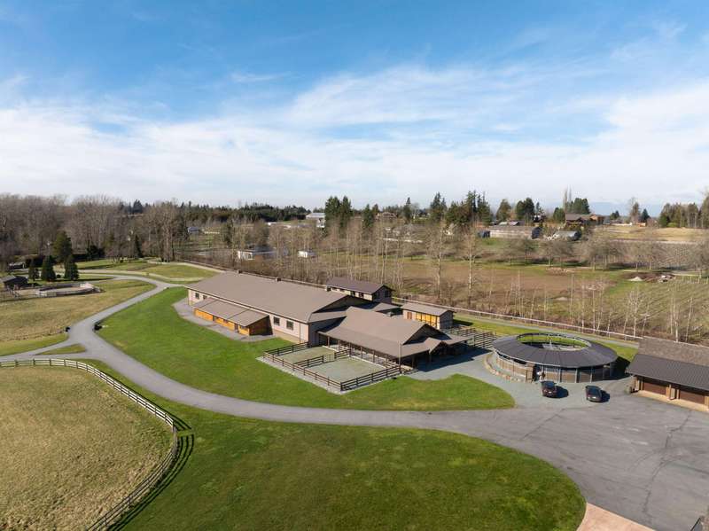 This private 15.19-acre equestrian estate in Campbell Valley offers stunning views of Mt Baker & Chaberton Estate Winery. Designed for horse enthusiasts, it features an indoor riding ring, 10 paddocks, heated tack room, equestrian mountain course, a perimeter riding track, & a covered hot walker. The 4,000+ sqft rancher includes 3 bedrooms, 4 bathrooms, & an elegant layout with spacious living areas. Outdoor highlights include lush gardens, pool, & a gated entrance offering privacy & tranquility. For vehicle storage & hobbies, enjoy a 4-car attached garage, a separate 3-car garage, & a large shop. This rare offering blends equestrian excellence with luxury living in one of Langley’s most sought-after locations, providing the perfect balance of nature, recreation & refined country living.