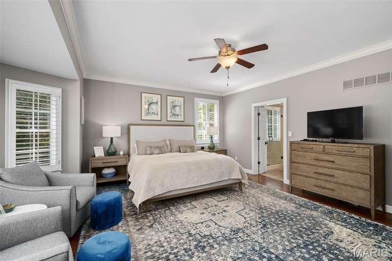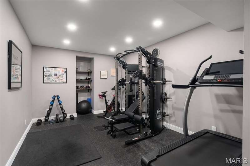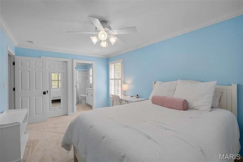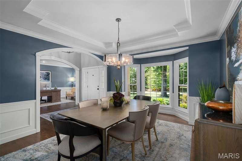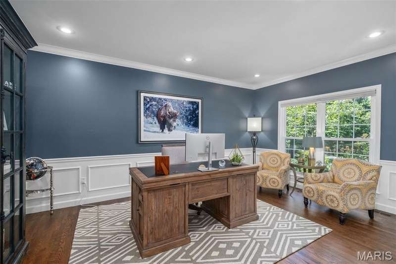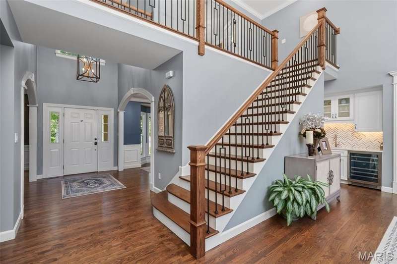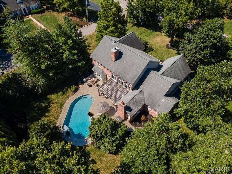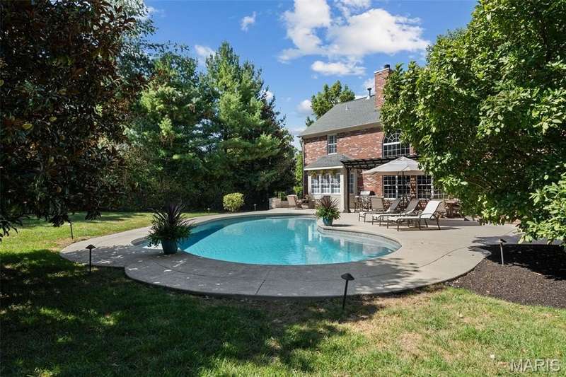 Located in Ladue, Daniel Rd offers an exceptional blend of updated luxury and comfort throughout. The current owners have meticulously maintained this 5 Bdrm, 5.5 bath home as well as curating the following renovations: new custom kitchen with high end appliances, new wet bar in great rm with herringbone backsplash, updated powder rm, main floor laundry, refinished flooring, updated staircase with new railing and iron spindles, renovation of lower level, expanding the sq ft to include an entertaining wet bar, updated full bath, gym and so much more. The private backyard offers renovated spaces to complement the beautiful pool including new and expanded pool decking, patio, firepit, pergola and landscape lighting. A true oasis. Main floor primary, cozy family rm with fireplace and so much room to spread out make this a true standout to our market. Updated HVAC, Ladue schools.