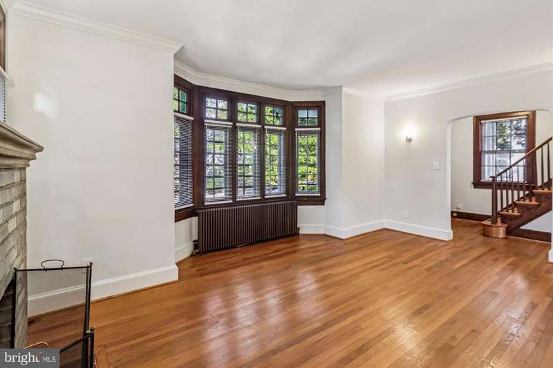 Charming 1930s Tudor in Highly Desirable Chevy Chase Nestled on a quiet, tree-lined one-way street, this classic 1930s Tudor home exudes timeless charm and character. A welcoming front porch sets the tone for this beautifully residence, which features 3 bedrooms, 2 full baths, and 2 half baths. The main level offers a spacious living room with elegant crown molding, a stunning stone fireplace, and large bay windows that fill the space with natural light. Adjacent to the living area, a sunroom overlooks the serene back garden-perfect for relaxing or entertaining. The updated and expanded chef's kitchen features some modern appliances, generous counter space, and a window that provides a lovely view of the backyard. A conveniently located powder room completes the main level. Upstairs, you'll find three comfortable bedrooms and two full baths, including one with a shower stall. The large attic and a versatile basement-complete with washer and dryer-offer plenty of storage and flexible living space. Outside, enjoy a private fenced backyard and garden that leads to a detached one-car garage, with additional ample street parking available. Pets are negotiable. Ideally situated within walking distance of Politics and Prose Bookstore, numerous restaurants and coffee shops, grocery stores, and just 1.3 miles from the Van Ness Metro, this home combines historic charm with unbeatable convenience.