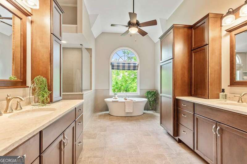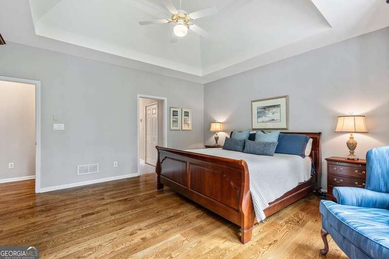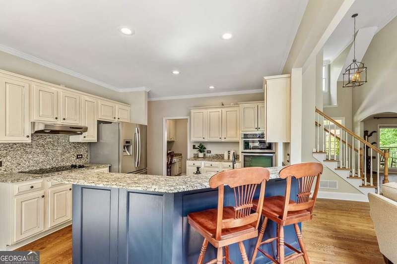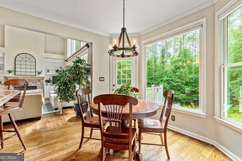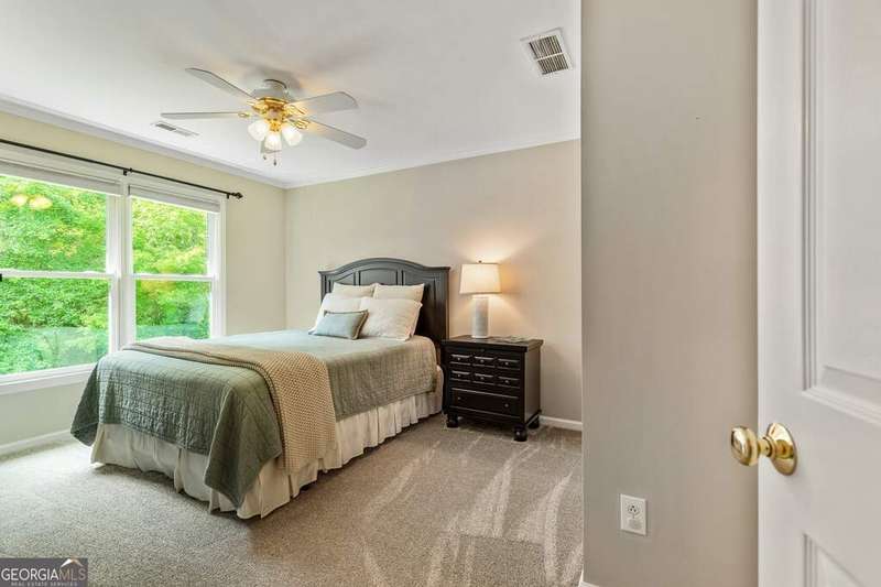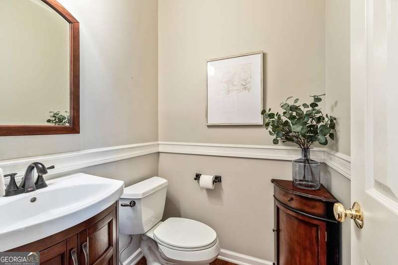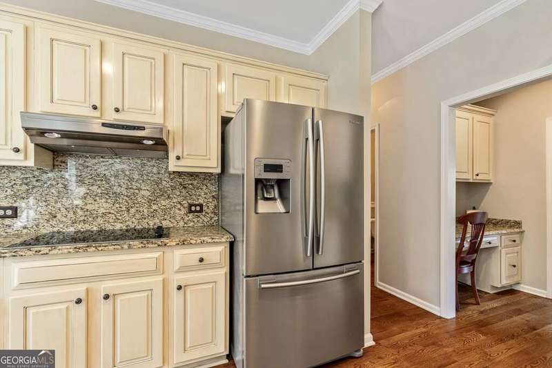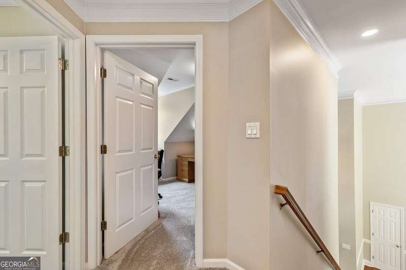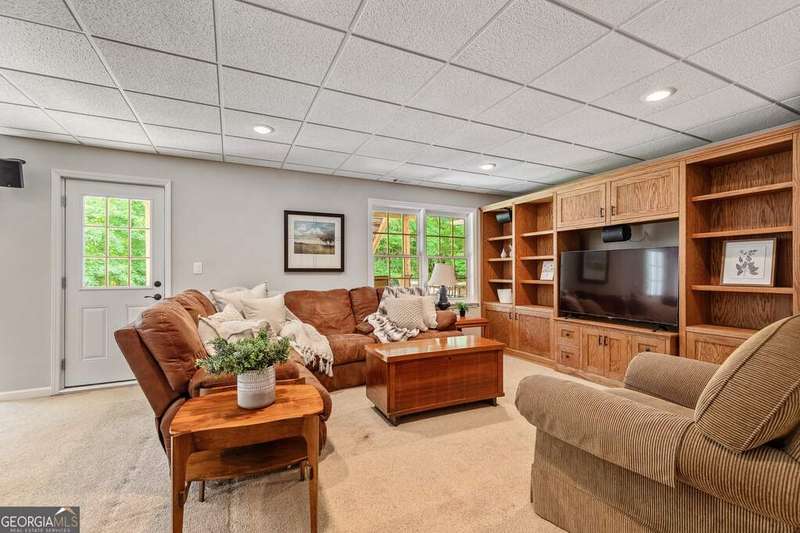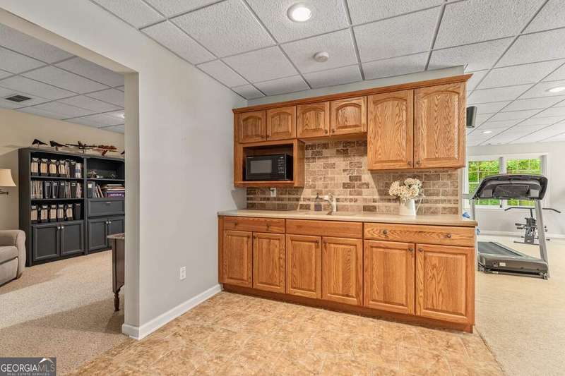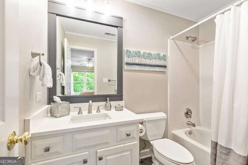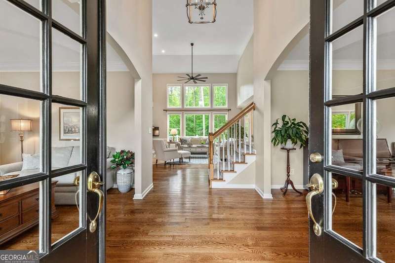 This beautifully maintained, one-owner home is located in the desirable Woodcreek subdivision, known for its resort-style amenities and its location within the highly acclaimed Starr's Mill school district. This home is beautifully finished with cement fiber siding and stone accents, offering elevated curb appeal. Perched gracefully on a gentle rolling hill, it welcomes you with a charming covered front porch - perfect for rocking chairs and morning coffee. As you enter through the front door, you are greeted by a grand two-story foyer flanked by two versatile spaces that could be used as a formal living room, den, library, music room, or home office. To the far right, you will find a formal dining room ideal for hosting guests. The heart of the home is the dramatic two-story great room featuring a cozy fireplace with custom built-in bookshelves on either side. Large windows fill the space with natural light and offer peaceful views of the private, tree lined backyard. The open-concept kitchen flows seamlessly into the living area, creating a perfect layout for family living and entertaining. The kitchen boasts granite countertops, stainless steel appliances, and a spacious walk-in pantry with premium wood shelving. Just beyond the kitchen is a well-maintained back deck constructed of Trex composite decking, which offers long-term durability and a splinter-free surface-ideal for relaxing outdoors or enjoying an evening meal surrounded by nature. The hardwood floors continue into the owner's suite on the main floor, where a private door opens to the deck for convenient outdoor access. The primary closets have been thoughtfully customized with premium built-ins, and the beautifully updated en-suite bathroom includes heated tile floors, double vanities, a soaking tub, a glass-enclosed shower, and a private water closet. This luxurious, spa-like space was designed with both comfort and style in mind. Upstairs, you will find three additional bedrooms, a dedicated office, and 2 full baths. From the hallway you have access to an updated full bathroom featuring double vanities and a private toilet and shower area. This bathroom also has access to one of the guest bedrooms. Additionally, one of the upstairs bedrooms features its own en-suite bathroom and is generously sized, easily functioning as a second primary suite or a comfortable guest retreat. The finished terrace-level basement adds even more functional living space. Full-sized windows along the back wall bring in natural light, making this level feel open and inviting. It includes a large entertainment area, a full bathroom with tile flooring, an extra room that could easily be used for a 5th bedroom, and a spacious flex room that is currently used as an office but could also serve as a home gym or media room. A kitchenette with a sink, microwave, cabinetry, and countertop offers the convenience of a wet bar-perfect for entertaining. There is also a semi-finished workshop area attached to an unfinished storage space. The Woodcreek subdivision offers a vibrant lifestyle with access to a swimming pool featuring a large water slide, a clubhouse, fitness center, playground, tennis courts, and basketball courts-making it one of the most coveted neighborhoods on the south side of Atlanta. This home also connects directly to Peachtree City's extensive golf cart path network, allowing for easy and fun access to parks, restaurants, retail and top-rated schools - without ever needing a car. From the location and layout to the updates and finishes, 510 Stonehaven Dr offers a rare opportunity to own a truly special property in Woodcreek.