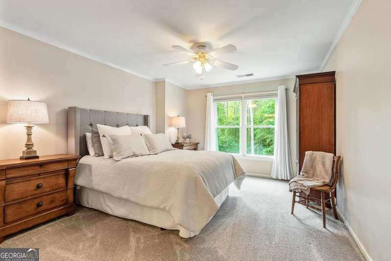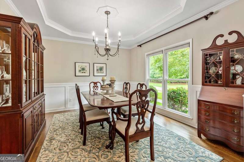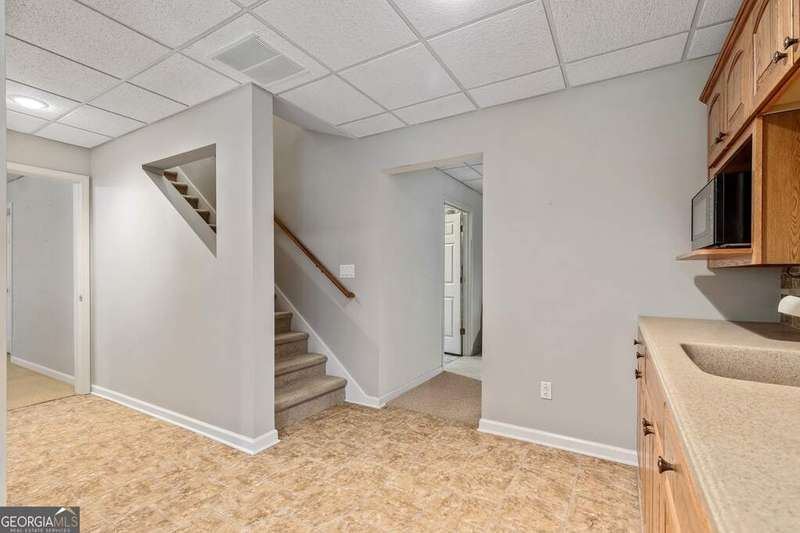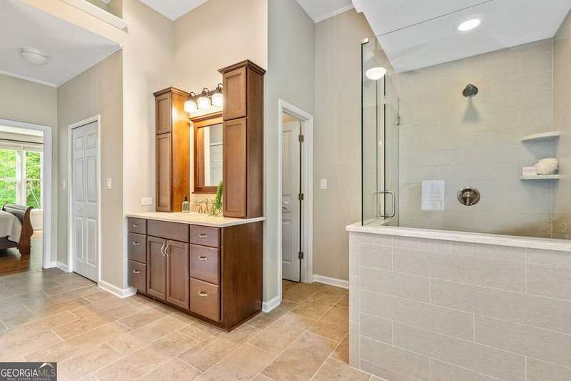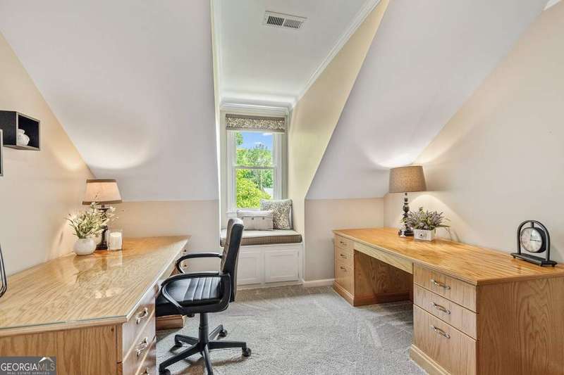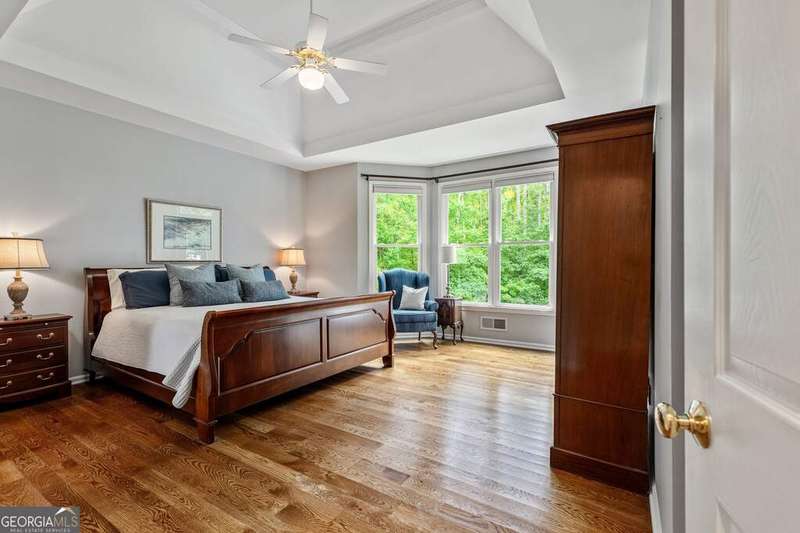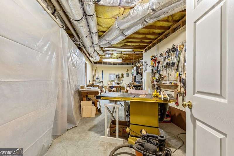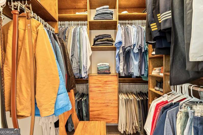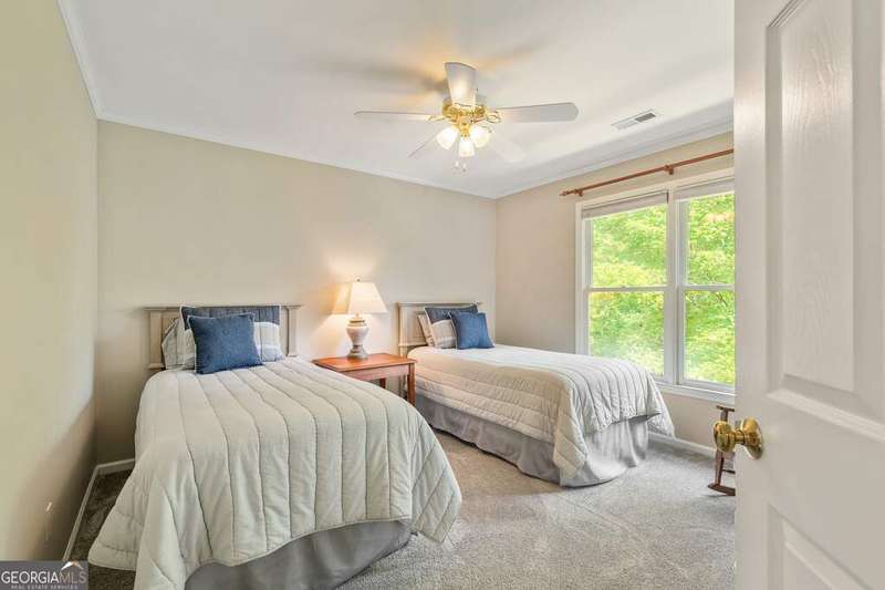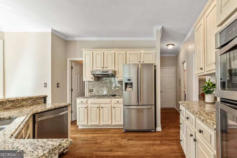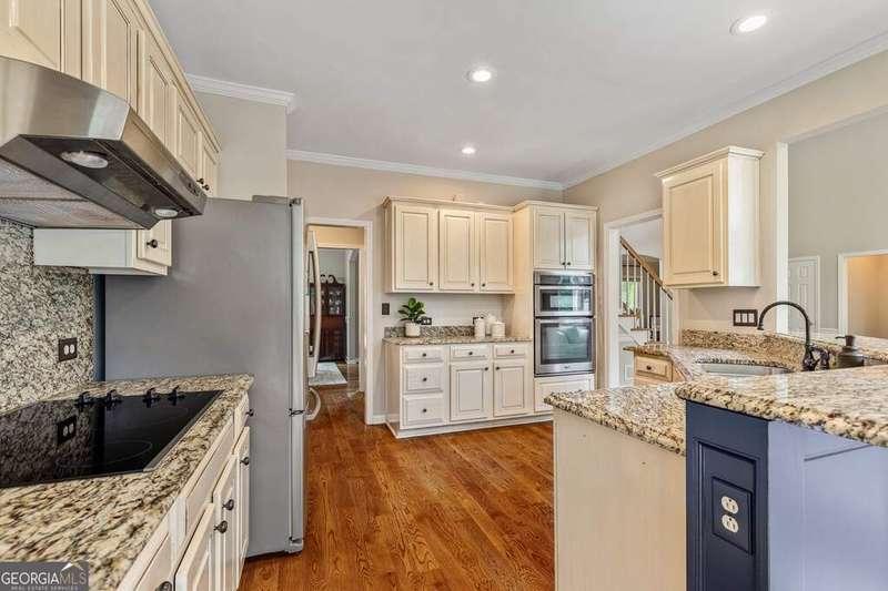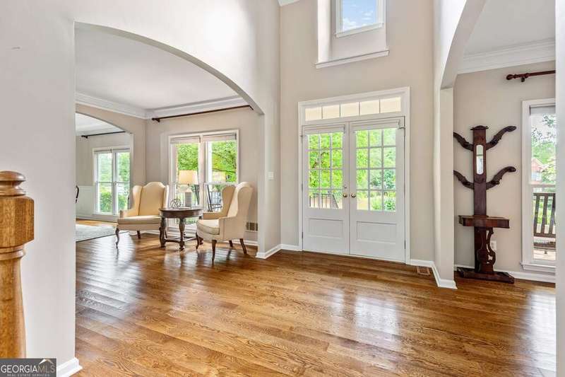 This beautifully maintained, one-owner home is located in the desirable Woodcreek subdivision, known for its resort-style amenities and its location within the highly acclaimed Starr's Mill school district. This home is beautifully finished with cement fiber siding and stone accents, offering elevated curb appeal. Perched gracefully on a gentle rolling hill, it welcomes you with a charming covered front porch - perfect for rocking chairs and morning coffee. As you enter through the front door, you are greeted by a grand two-story foyer flanked by two versatile spaces that could be used as a formal living room, den, library, music room, or home office. To the far right, you will find a formal dining room ideal for hosting guests. The heart of the home is the dramatic two-story great room featuring a cozy fireplace with custom built-in bookshelves on either side. Large windows fill the space with natural light and offer peaceful views of the private, tree lined backyard. The open-concept kitchen flows seamlessly into the living area, creating a perfect layout for family living and entertaining. The kitchen boasts granite countertops, stainless steel appliances, and a spacious walk-in pantry with premium wood shelving. Just beyond the kitchen is a well-maintained back deck constructed of Trex composite decking, which offers long-term durability and a splinter-free surface-ideal for relaxing outdoors or enjoying an evening meal surrounded by nature. The hardwood floors continue into the owner's suite on the main floor, where a private door opens to the deck for convenient outdoor access. The primary closets have been thoughtfully customized with premium built-ins, and the beautifully updated en-suite bathroom includes heated tile floors, double vanities, a soaking tub, a glass-enclosed shower, and a private water closet. This luxurious, spa-like space was designed with both comfort and style in mind. Upstairs, you will find three additional bedrooms, a dedicated office, and 2 full baths. From the hallway you have access to an updated full bathroom featuring double vanities and a private toilet and shower area. This bathroom also has access to one of the guest bedrooms. Additionally, one of the upstairs bedrooms features its own en-suite bathroom and is generously sized, easily functioning as a second primary suite or a comfortable guest retreat. The finished terrace-level basement adds even more functional living space. Full-sized windows along the back wall bring in natural light, making this level feel open and inviting. It includes a large entertainment area, a full bathroom with tile flooring, an extra room that could easily be used for a 5th bedroom, and a spacious flex room that is currently used as an office but could also serve as a home gym or media room. A kitchenette with a sink, microwave, cabinetry, and countertop offers the convenience of a wet bar-perfect for entertaining. There is also a semi-finished workshop area attached to an unfinished storage space. The Woodcreek subdivision offers a vibrant lifestyle with access to a swimming pool featuring a large water slide, a clubhouse, fitness center, playground, tennis courts, and basketball courts-making it one of the most coveted neighborhoods on the south side of Atlanta. This home also connects directly to Peachtree City's extensive golf cart path network, allowing for easy and fun access to parks, restaurants, retail and top-rated schools - without ever needing a car. From the location and layout to the updates and finishes, 510 Stonehaven Dr offers a rare opportunity to own a truly special property in Woodcreek.