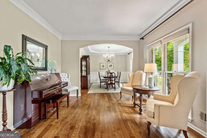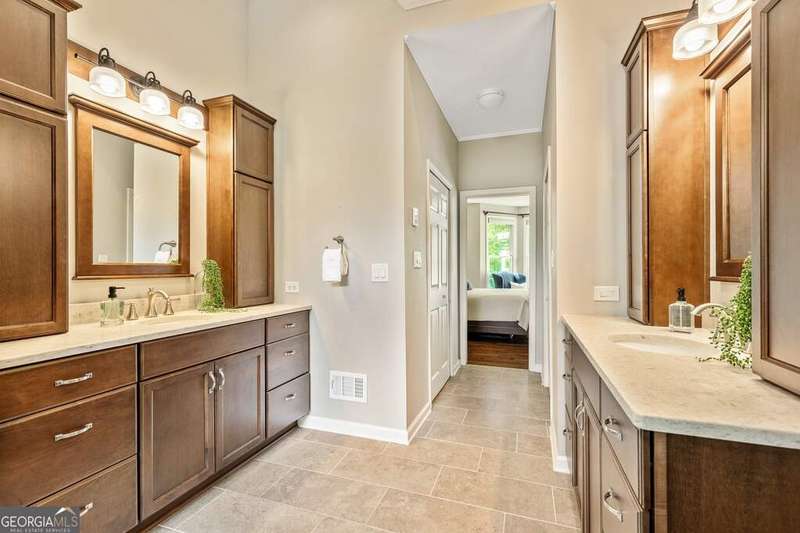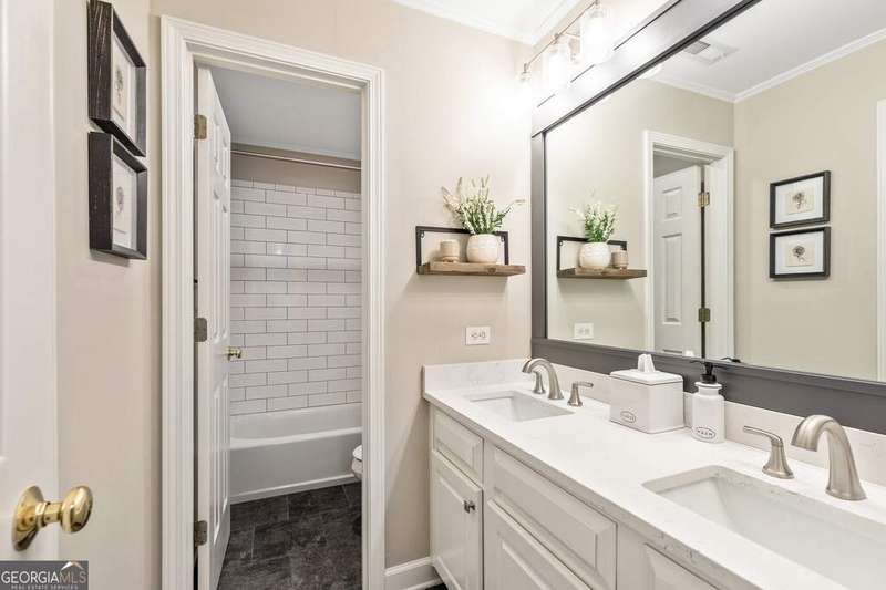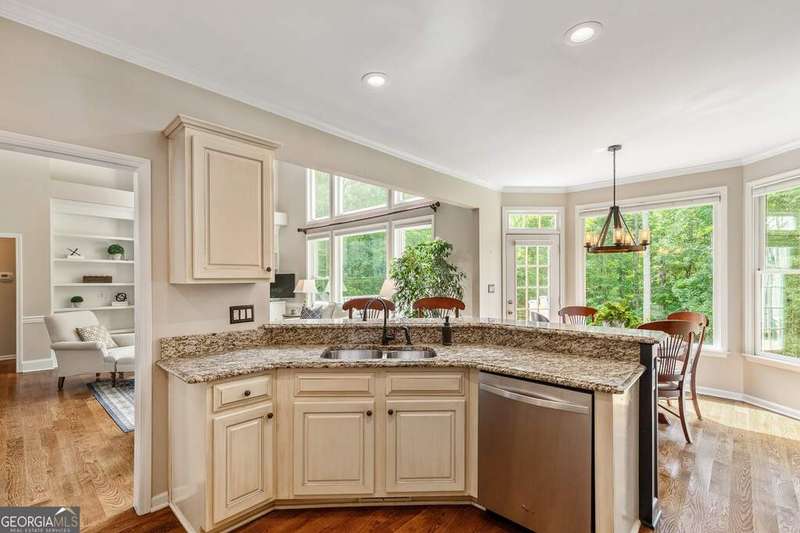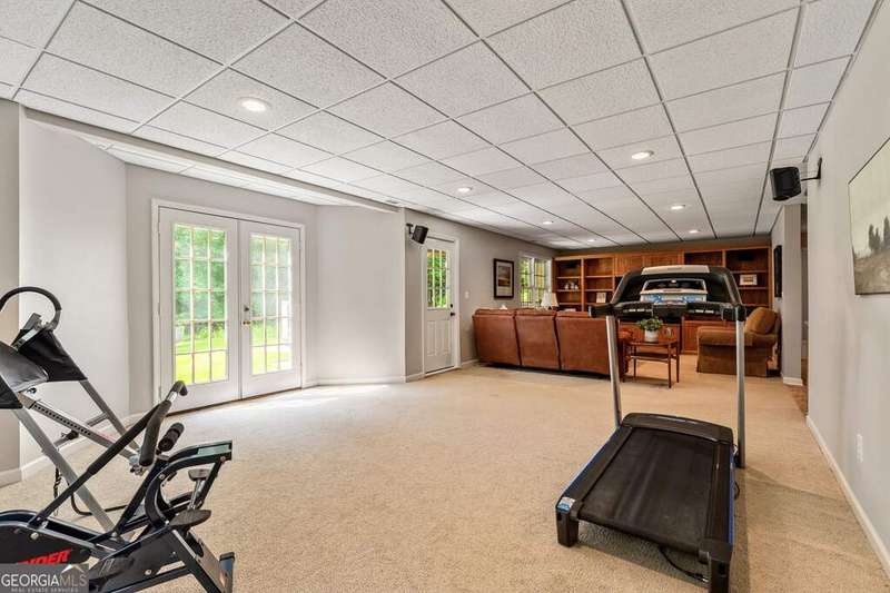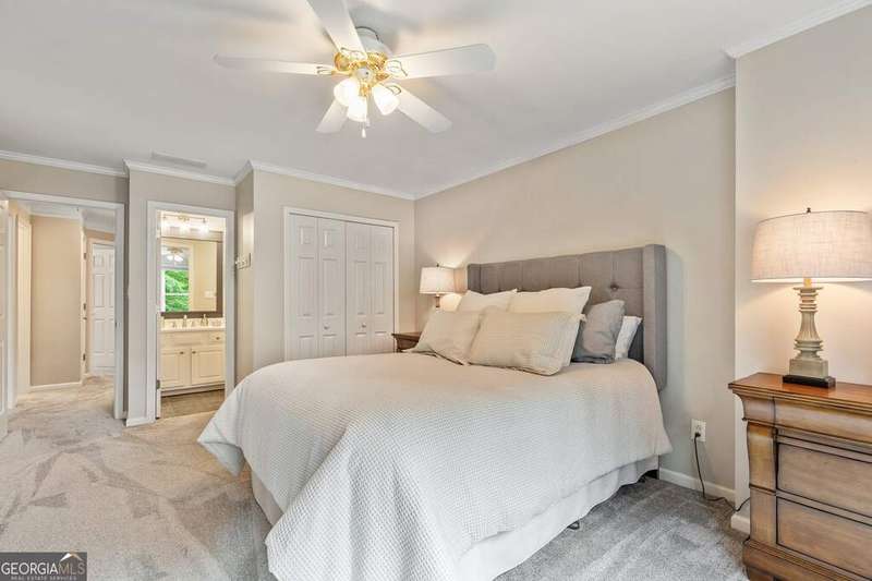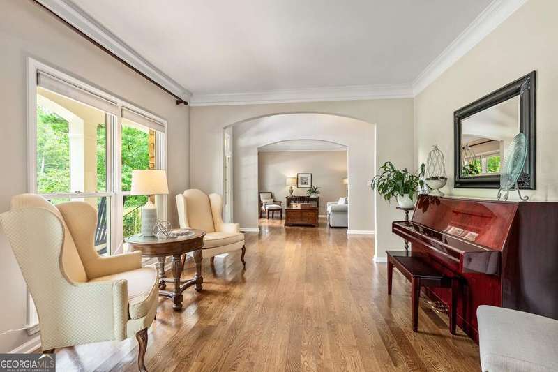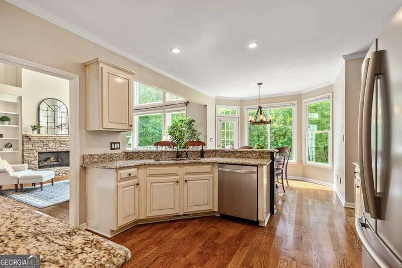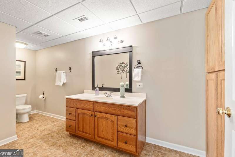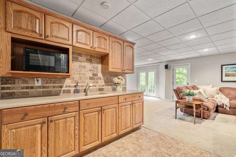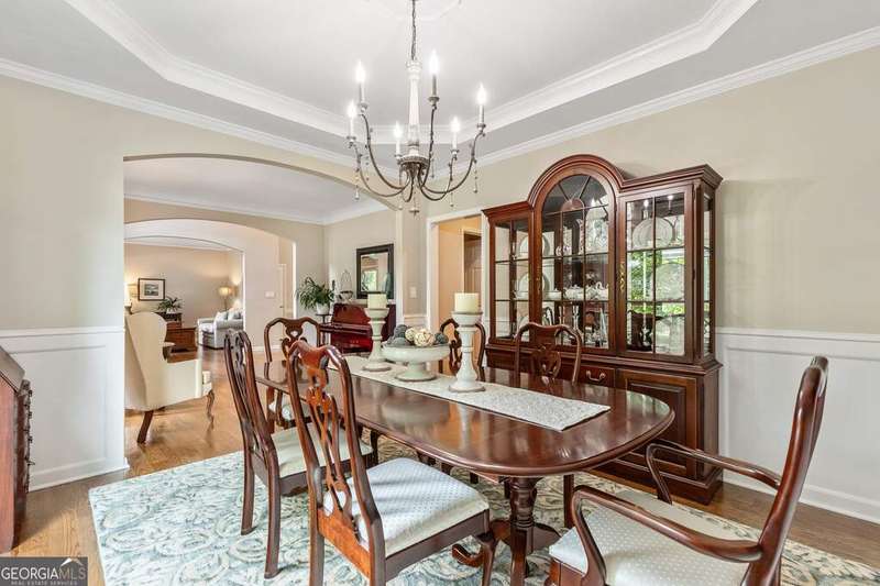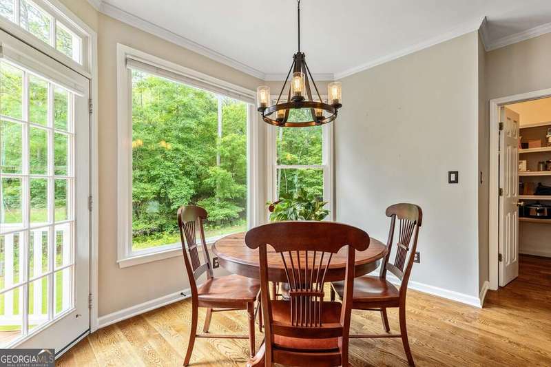 This beautifully maintained, one-owner home is located in the desirable Woodcreek subdivision, known for its resort-style amenities and its location within the highly acclaimed Starr's Mill school district. This home is beautifully finished with cement fiber siding and stone accents, offering elevated curb appeal. Perched gracefully on a gentle rolling hill, it welcomes you with a charming covered front porch - perfect for rocking chairs and morning coffee. As you enter through the front door, you are greeted by a grand two-story foyer flanked by two versatile spaces that could be used as a formal living room, den, library, music room, or home office. To the far right, you will find a formal dining room ideal for hosting guests. The heart of the home is the dramatic two-story great room featuring a cozy fireplace with custom built-in bookshelves on either side. Large windows fill the space with natural light and offer peaceful views of the private, tree lined backyard. The open-concept kitchen flows seamlessly into the living area, creating a perfect layout for family living and entertaining. The kitchen boasts granite countertops, stainless steel appliances, and a spacious walk-in pantry with premium wood shelving. Just beyond the kitchen is a well-maintained back deck constructed of Trex composite decking, which offers long-term durability and a splinter-free surface-ideal for relaxing outdoors or enjoying an evening meal surrounded by nature. The hardwood floors continue into the owner's suite on the main floor, where a private door opens to the deck for convenient outdoor access. The primary closets have been thoughtfully customized with premium built-ins, and the beautifully updated en-suite bathroom includes heated tile floors, double vanities, a soaking tub, a glass-enclosed shower, and a private water closet. This luxurious, spa-like space was designed with both comfort and style in mind. Upstairs, you will find three additional bedrooms, a dedicated office, and 2 full baths. From the hallway you have access to an updated full bathroom featuring double vanities and a private toilet and shower area. This bathroom also has access to one of the guest bedrooms. Additionally, one of the upstairs bedrooms features its own en-suite bathroom and is generously sized, easily functioning as a second primary suite or a comfortable guest retreat. The finished terrace-level basement adds even more functional living space. Full-sized windows along the back wall bring in natural light, making this level feel open and inviting. It includes a large entertainment area, a full bathroom with tile flooring, an extra room that could easily be used for a 5th bedroom, and a spacious flex room that is currently used as an office but could also serve as a home gym or media room. A kitchenette with a sink, microwave, cabinetry, and countertop offers the convenience of a wet bar-perfect for entertaining. There is also a semi-finished workshop area attached to an unfinished storage space. The Woodcreek subdivision offers a vibrant lifestyle with access to a swimming pool featuring a large water slide, a clubhouse, fitness center, playground, tennis courts, and basketball courts-making it one of the most coveted neighborhoods on the south side of Atlanta. This home also connects directly to Peachtree City's extensive golf cart path network, allowing for easy and fun access to parks, restaurants, retail and top-rated schools - without ever needing a car. From the location and layout to the updates and finishes, 510 Stonehaven Dr offers a rare opportunity to own a truly special property in Woodcreek.