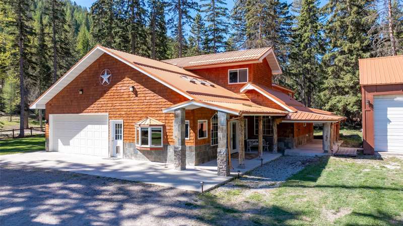 Extraordinary 3,100 sq ft home nestled on 11 pristine acres of Montana wilderness. This 4BR/3BA retreat showcases hardwood floors, chef's kitchen featuring granite countertops, and a welcoming propane fireplace that anchors the great room. The master suite opens to a private balcony overlooking your personal creek-nature's soundtrack at your doorstep. Multiple outdoor entertainment areas include three thoughtfully positioned fire pits for evening gatherings under Montana's legendary starlit skies. This property includes an impressive collection of outbuildings designed for the Montana lifestyle: - 1,150 sq ft workshop with wood stove and 4-car capacity - an additional 1,200 sq ft building with heated floors, private bath, and laundry - 30' x 60' covered equipment storage - 20' x 30' weatherproof storage with convenient side access. The acreage features two meticulously maintained fields perfect for equestrian use, bordered by wooded hillsides offering complete privacy. Fully fenced areas provide security for pets and livestock. Strategic location balances accessibility with seclusion-just 8 minutes to K-8 school, 15 minutes to downtown and high school, and 25 minutes to dual ski areas. Yellowstone Acres represents a rare opportunity to own a legacy Montana property.