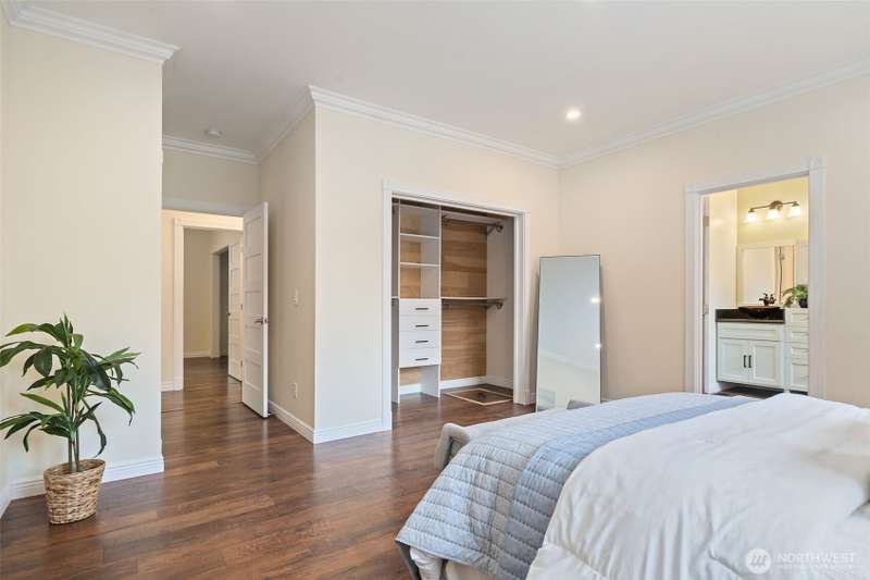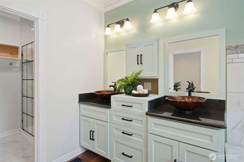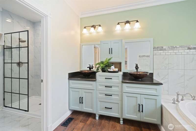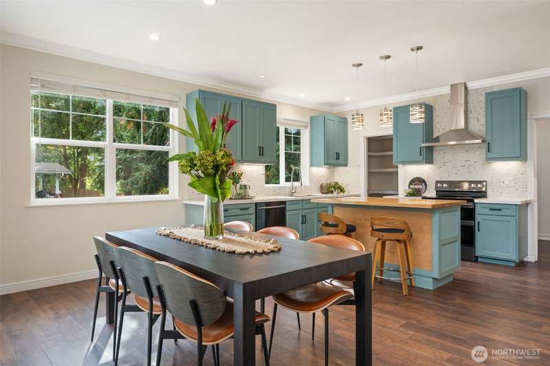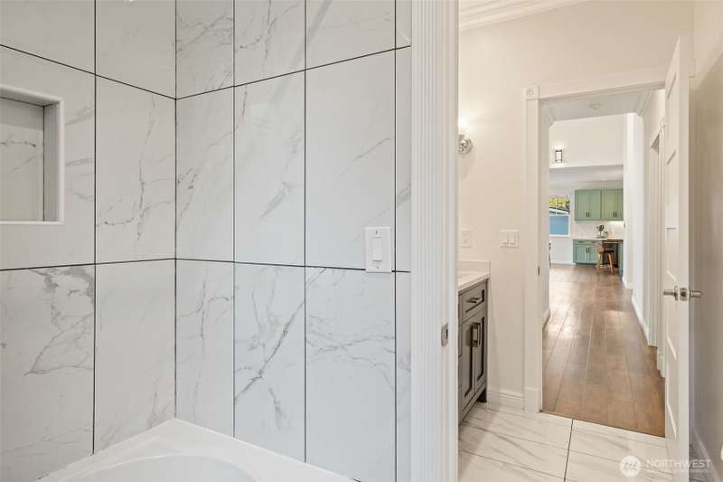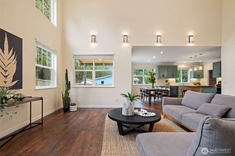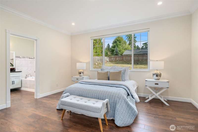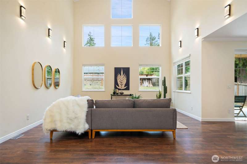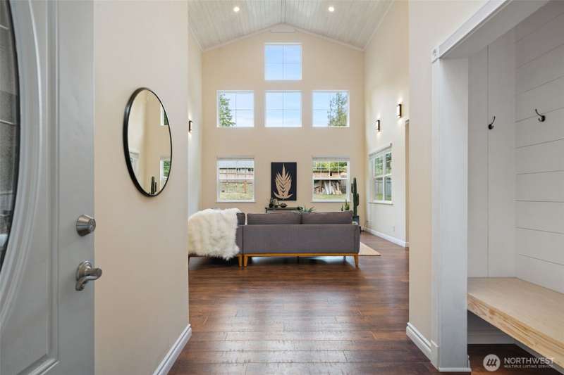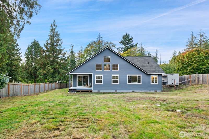 Beautifully crafted custom single level home featuring an open-concept design and vaulted great room w/acoustic insulation for peaceful living. Chef’s kitchen impresses w/custom cabinetry, quartz countertops, high-end lighting, prep island, & walk-in pantry. Thoughtful details include solid wood doors, elegant crown molding, and smart climate control with central A/C and heat pump. Relax in the spa-inspired primary bath with double sinks, walk-in shower, and soaking tub. Enjoy covered front and back porches for year-round outdoor dining and entertaining. Fully fenced backyard, w/chicken house & garden space. Community includes private beach, dock, park & clubhouse. —All this & just minutes to ferries & downtown. This home is sure to please!