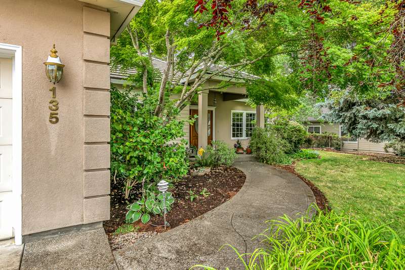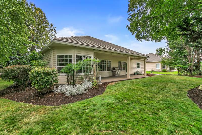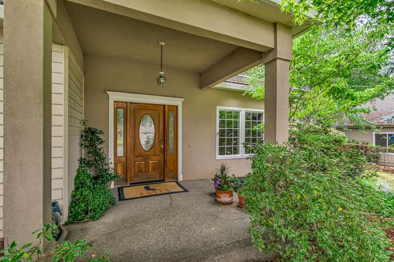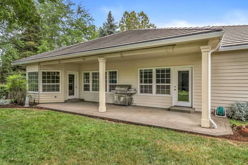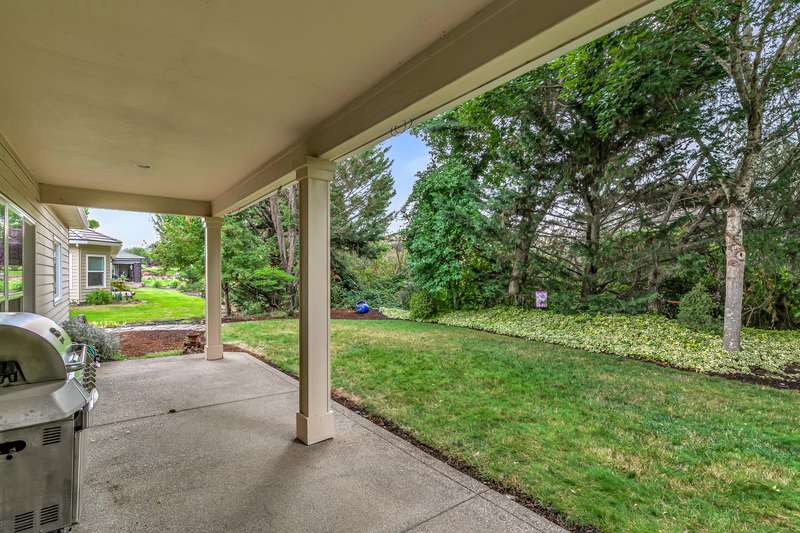 This great value in the Eagle Point Golf Community is over 1,964 sq. ft. 3-bedroom home with expansive living spaces and a lovely kitchen. Oak hardwood floors grace the entry, dining, kitchen and hallway under 9-10'' ceilings. The kitchen is quite spacious and features a dining nook looking out to the backyard. The living room is very spacious and has a gas fireplace and numerous built-ins. The 3rd bedroom would work well as an office/hobby room. Sizable primary bedroom has walk-in closet while the ensuite bathroom boasts double vanity, large soaking tub and walk-in shower. Out back is a large, covered porch for entertaining and a seasonal creek along the property line. Home has gas heat and water heater. This lovely home is located near the club house and Talon Grill on a quiet loop street. Come enjoy Eagle Point and discounts on Club Memberships at the golf course.