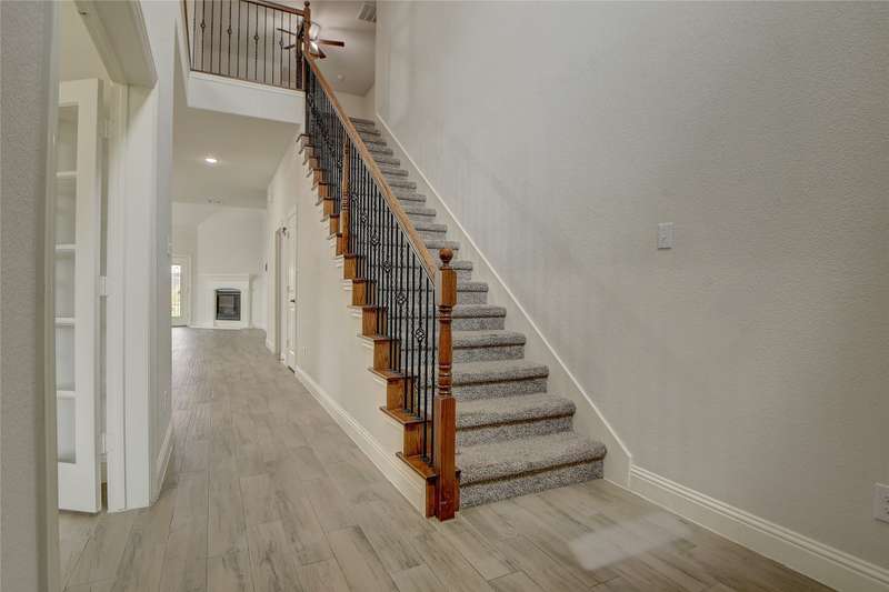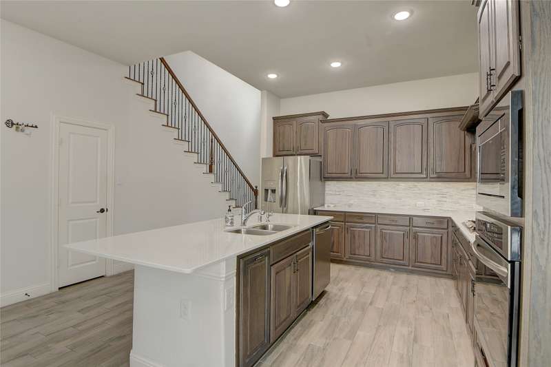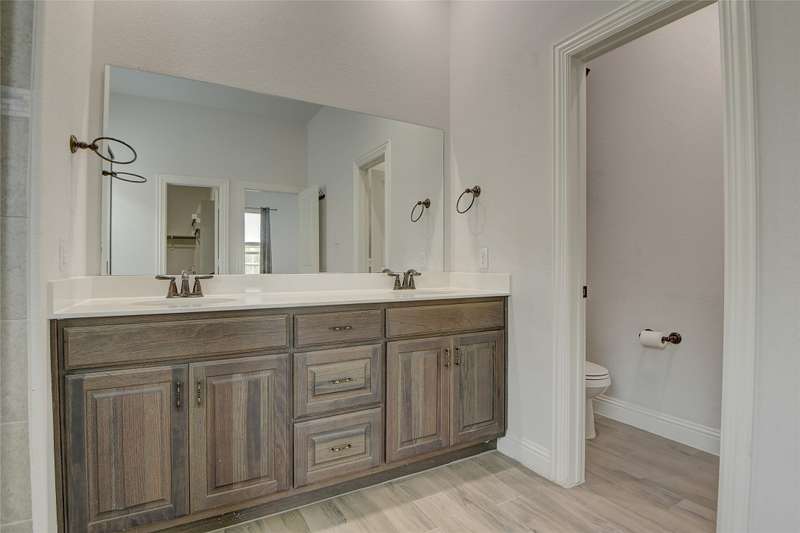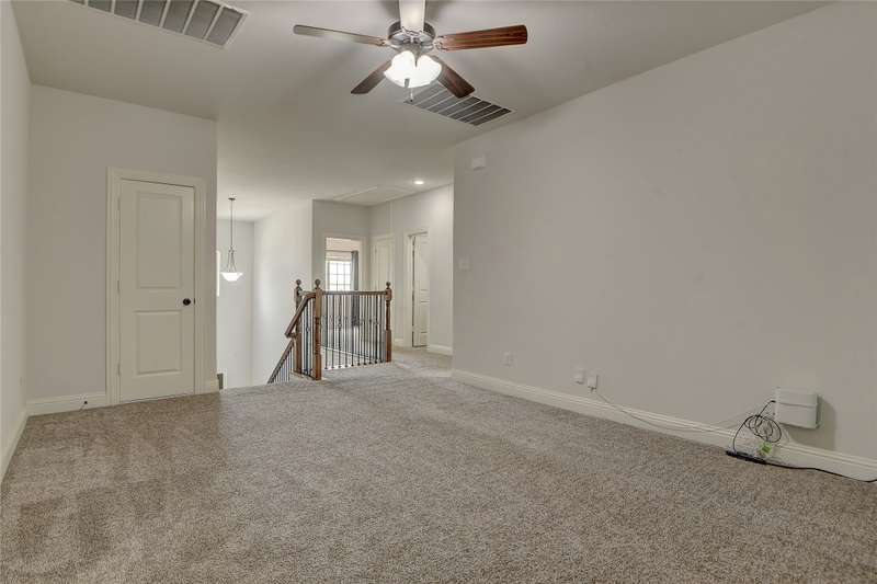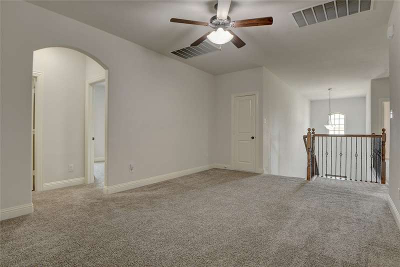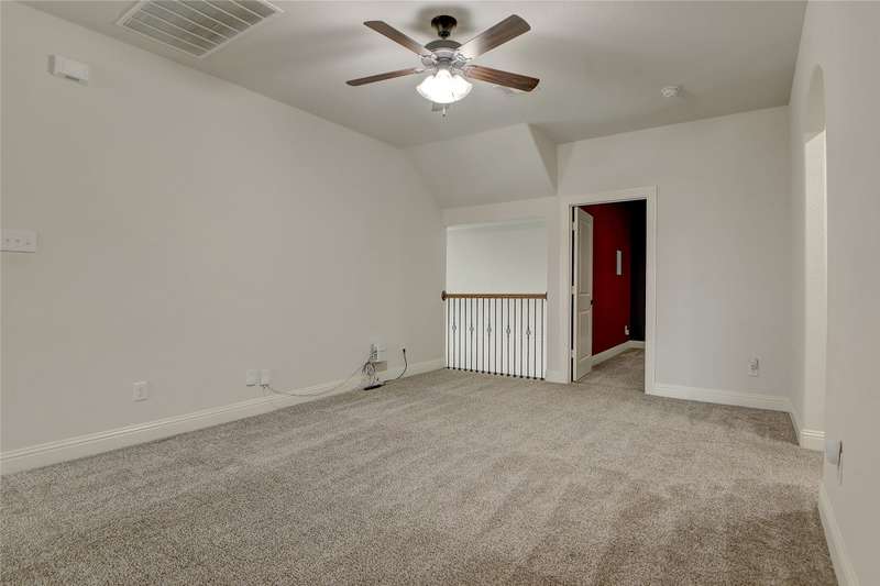 Beautiful and move-in ready home located in the highly desirable Westridge community and zoned to top-rated Prosper ISD. This spacious home features vaulted ceilings, quartz countertops, gas cooktop, stainless steel appliances including refrigerator, and a large kitchen island with breakfast bar seating. Open-concept floor plan with wood-look flooring, neutral paint tones, and abundant natural light throughout. Downstairs offers a private primary suite with a spa-like bath and walk-in closet, plus additional bedrooms and a home office or flex space. Upstairs includes a spacious game room and dedicated media roomperfect for movie nights and entertaining guests.Enjoy the large backyard with a covered porch, ideal for grilling, relaxing, or outdoor play. Community amenities include multiple pools, splash pads, parks, and walking trails. Conveniently located near schools, shopping, dining, and major highways.