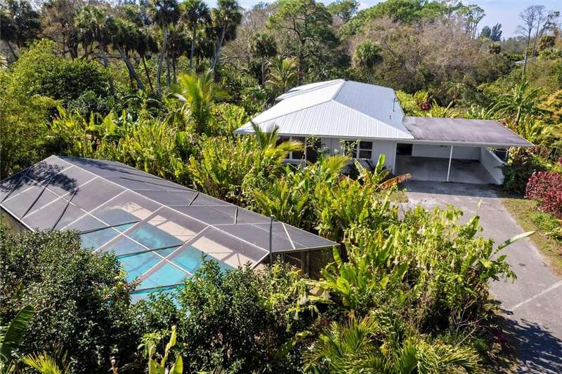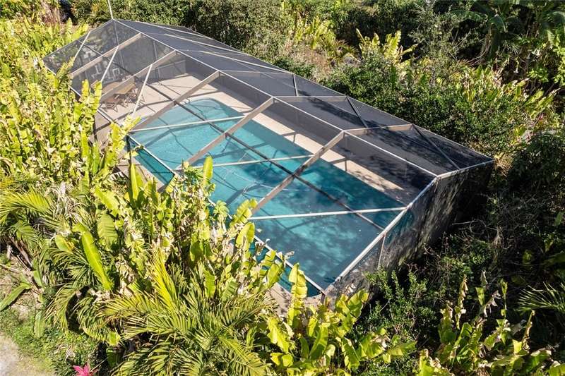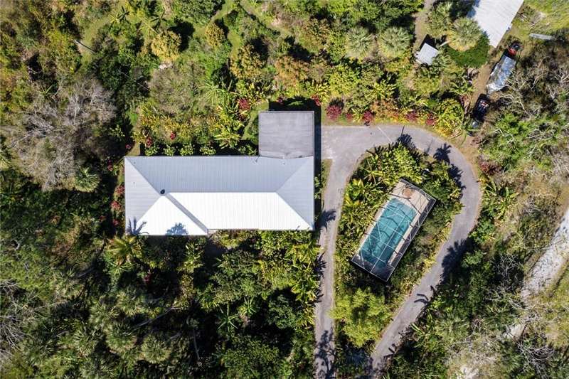 Frog Valley Tropical Fruit Farm offers nearly 10 acres just 7 miles from the beach, showcasing Mangosteens, Durian, Cacao, Star Apple, Guanabana, Atemoyas, Seashore Mangosteens, and other different Exotic Tropical Fruit Trees ~1,000 organically grown fruit trees, including 270 grafted mangoes. Renovated 4BR/3BA, 2,363 sq ft home features a 2017 metal roof, impact windows, quartz kitchen, and updated baths. Outdoors, enjoying screened pool surrounded with orchids outside,pond, barn, animal pens, and whole-home generator. Rare mix of tranquility & convenienceyour private tropical retreat awaits