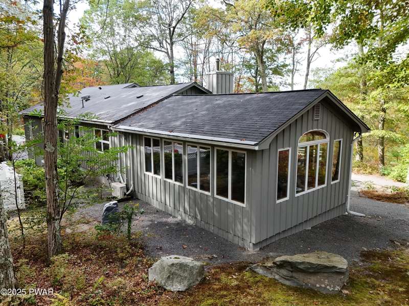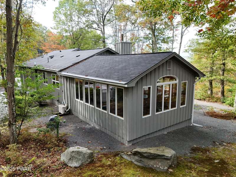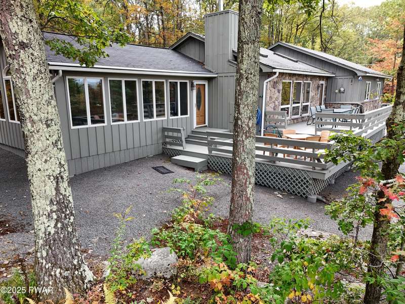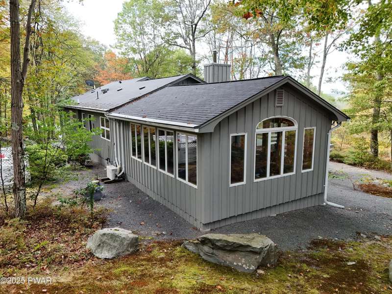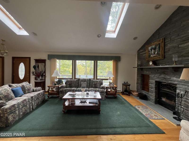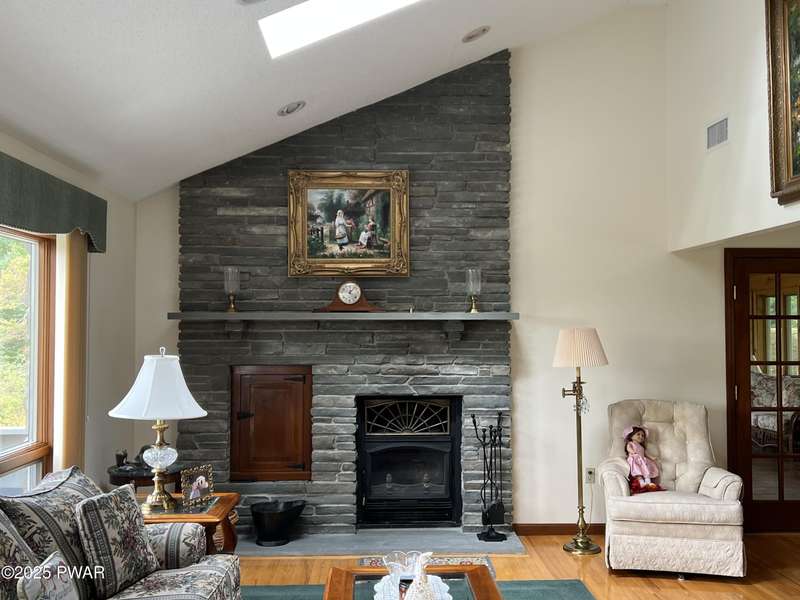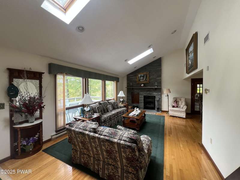 This home was purchased in 2002 by the seller who spent many hours and lots of money between renovations and upgrades making it the perfect year round or vacation residence. Make sure to read the documents and disclosures that lists everything that was done. The moment you enter the foyer and see the formal living room with the glistening hard wood floors you will feel warm and at home. The floor to ceiling bluestone fireplace with slate mantel and hearth surround a top of the line wood stove. Enter the French doors to an amazing glass year round sunroom filled with light and tongue and grove cathedral ceilings this will turn out to be the favorite entertaining space. The formal dining area leads into the very spacious eat in kitchen with plenty of counters and storage space. Down the hall you will find spacious bedrooms, laundry area and pantry. The large primary suite with an ensuite bath with whirlpool tub and steam shower is very inviting for sure. The lower level has a large bonus room, 1/2 bath and plenty of storage space as well as an oversized garage. Make time to see this home that has been so very well taken care of inside and out today.