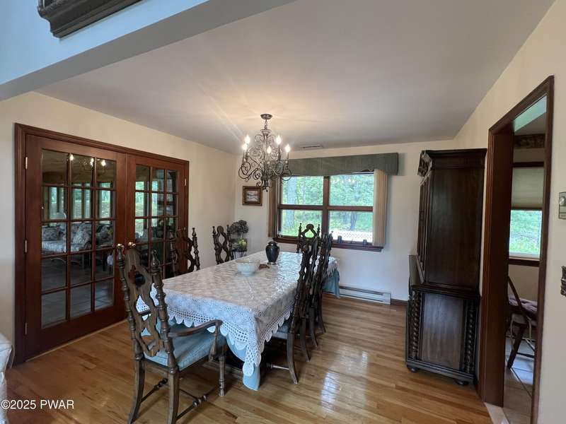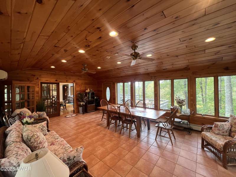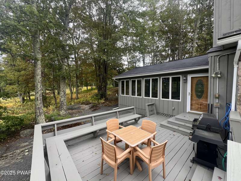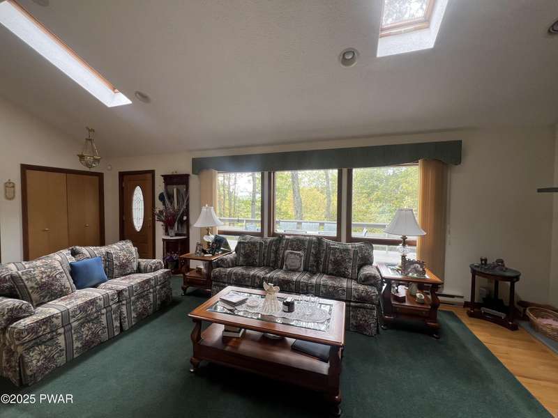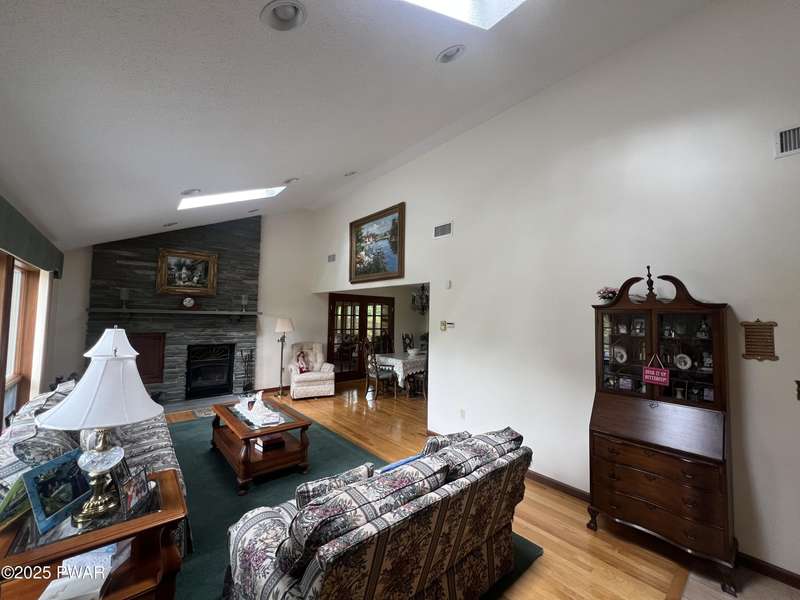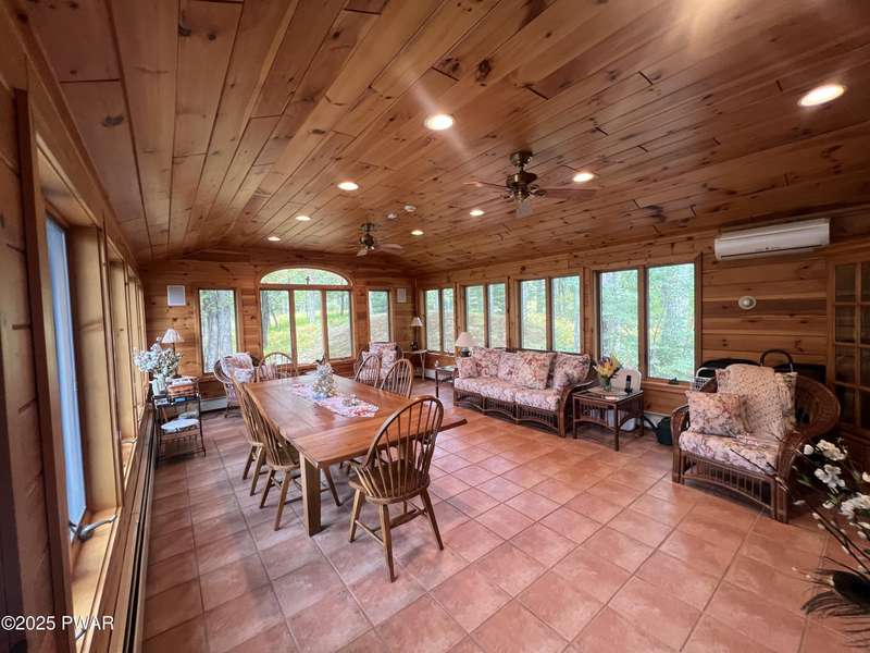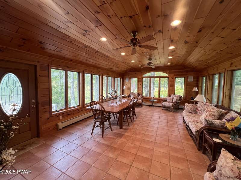 This home was purchased in 2002 by the seller who spent many hours and lots of money between renovations and upgrades making it the perfect year round or vacation residence. Make sure to read the documents and disclosures that lists everything that was done. The moment you enter the foyer and see the formal living room with the glistening hard wood floors you will feel warm and at home. The floor to ceiling bluestone fireplace with slate mantel and hearth surround a top of the line wood stove. Enter the French doors to an amazing glass year round sunroom filled with light and tongue and grove cathedral ceilings this will turn out to be the favorite entertaining space. The formal dining area leads into the very spacious eat in kitchen with plenty of counters and storage space. Down the hall you will find spacious bedrooms, laundry area and pantry. The large primary suite with an ensuite bath with whirlpool tub and steam shower is very inviting for sure. The lower level has a large bonus room, 1/2 bath and plenty of storage space as well as an oversized garage. Make time to see this home that has been so very well taken care of inside and out today.