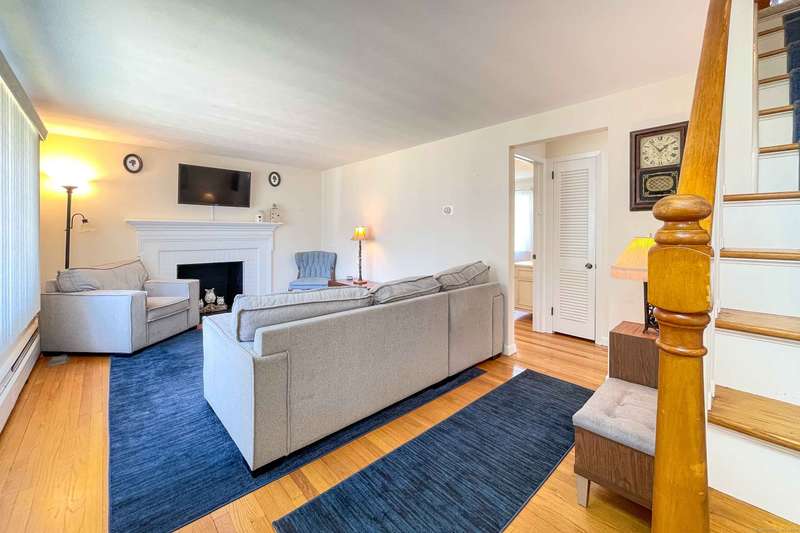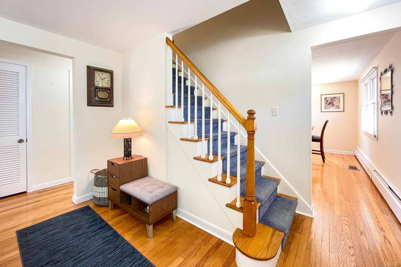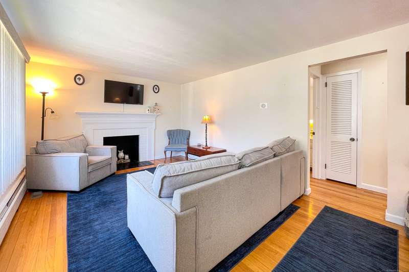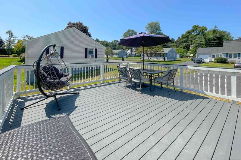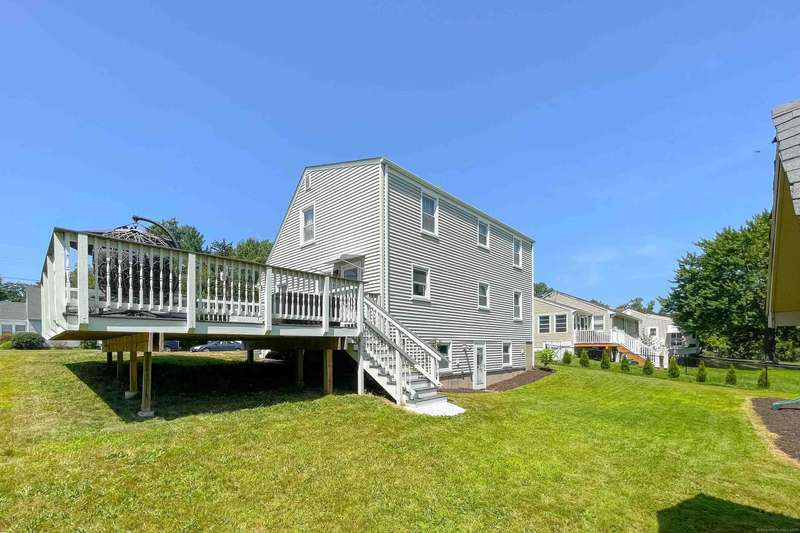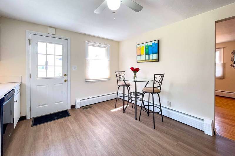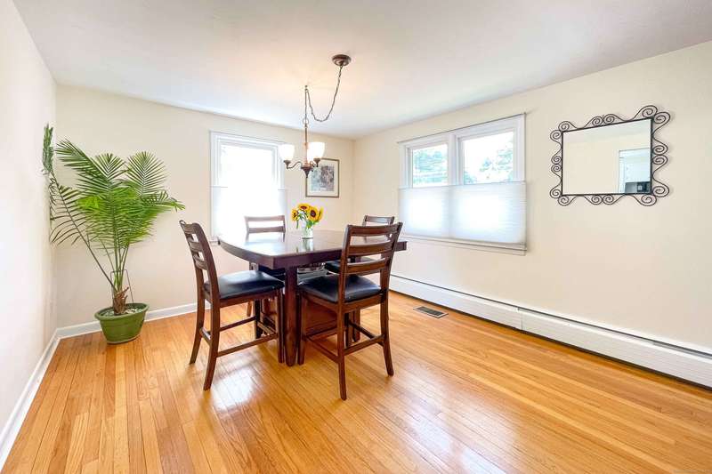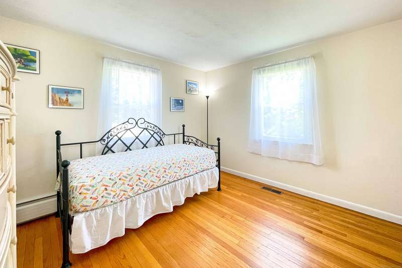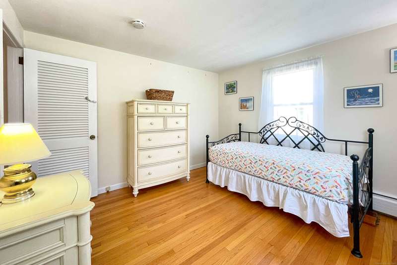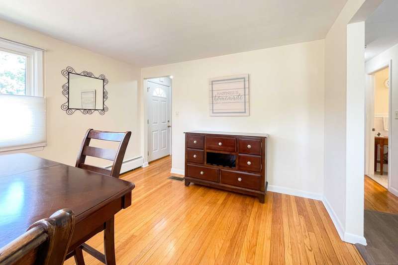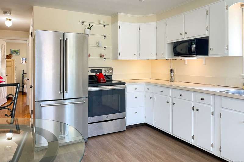 Beautifully maintained Cape offering many charming original details and the amenities you've been looking for! Step inside to find gleaming hardwood floors throughout and the living room with wood-burning fireplace. The cheery eat-in kitchen has new flooring, stainless steel appliances, and leads to the dining room and outside to the newer composite deck overlooking the yard. Convenient first-floor bedroom and full bath. Upstairs you'll find two more spacious bedrooms and the second full bath. The walk-out lower level includes a fantastic pantry with cabinetry and refrigerator, and includes a pellet stove, full sized windows and laundry area. Other features include natural gas heating, central a/c, newer roof (2018). Great location close to the town center with restaurants, shops and train station with Amtrak and Hartford Line. Welcome Home! HIGHEST AND BEST offers due by Monday, August 25th at NOON.