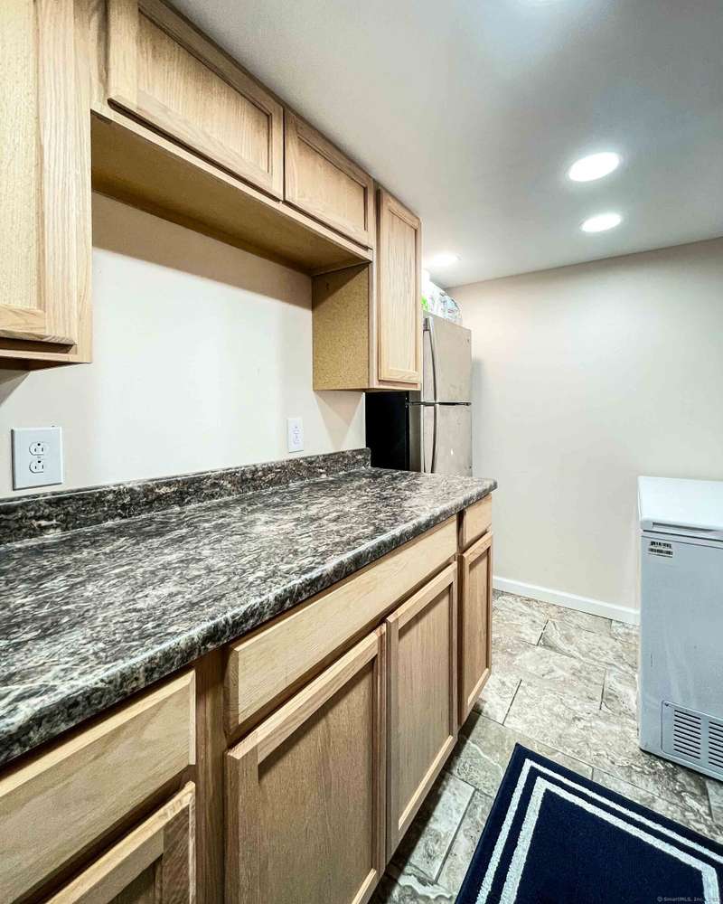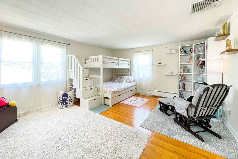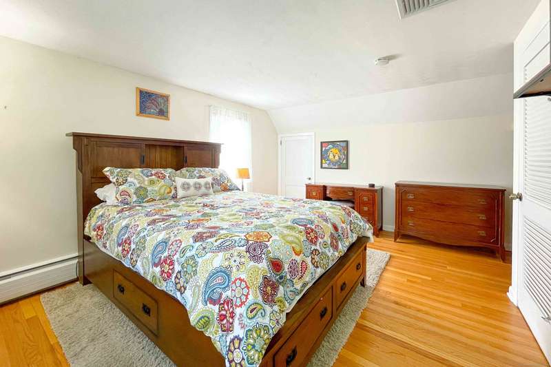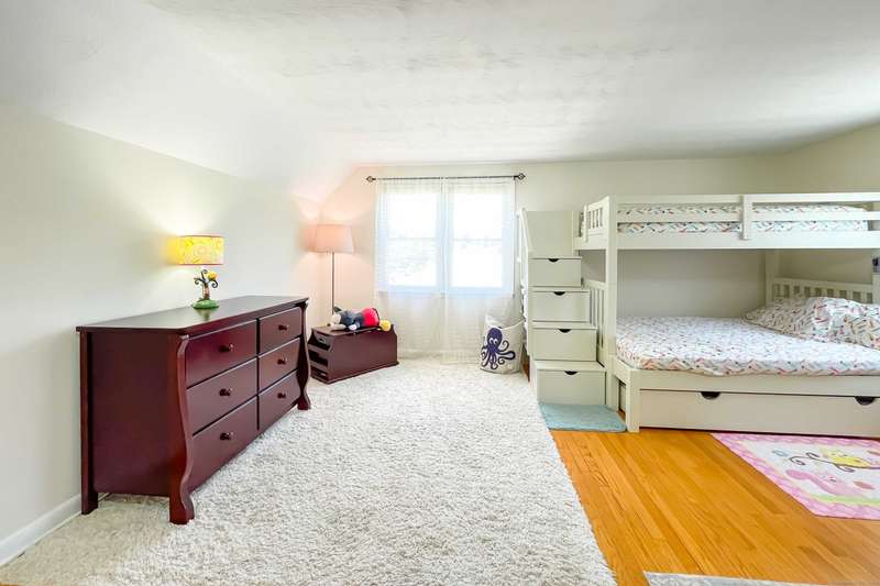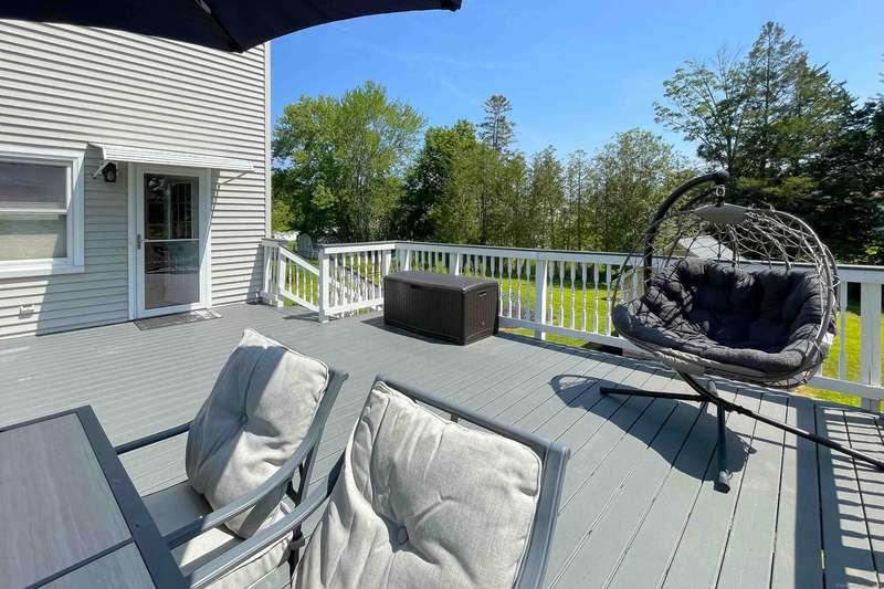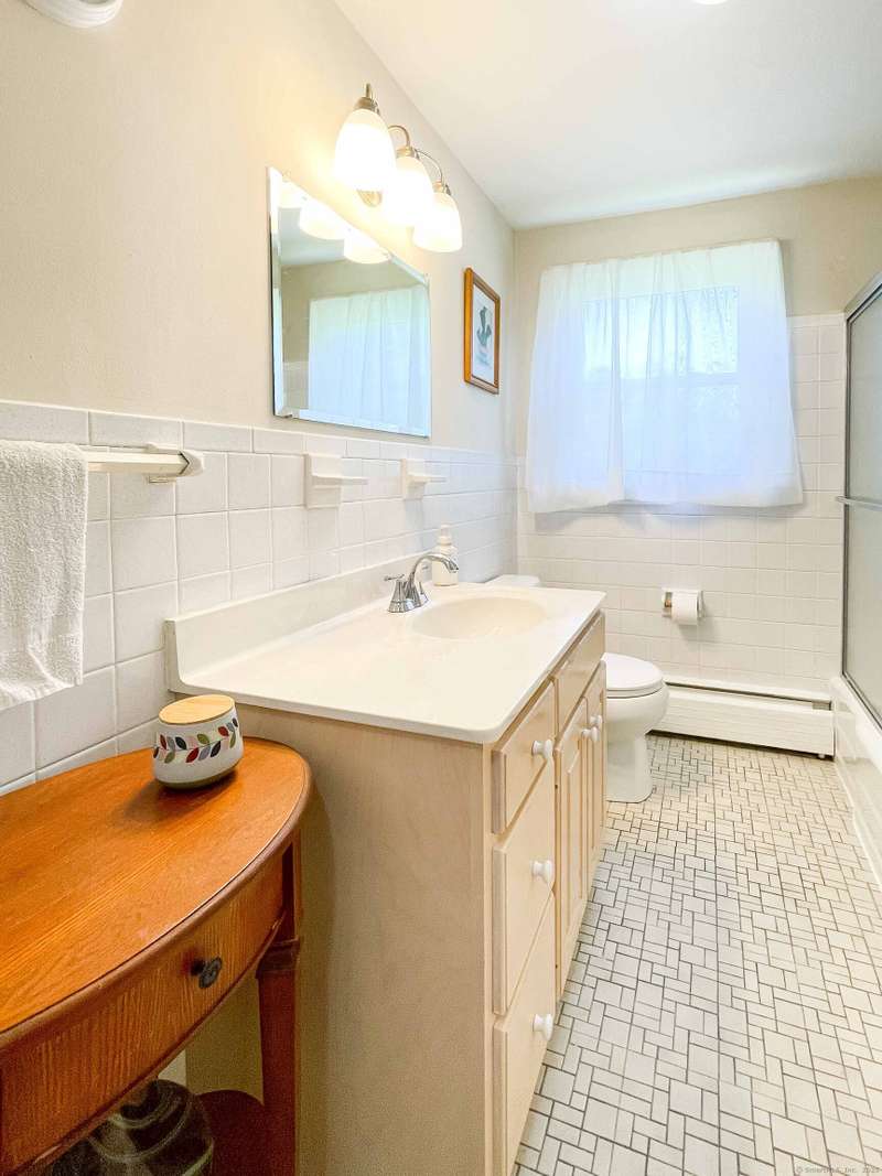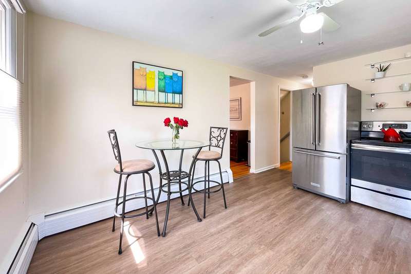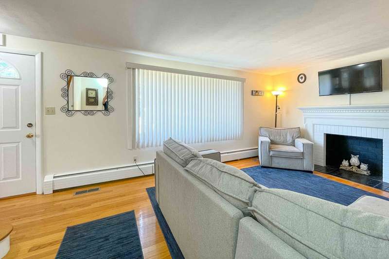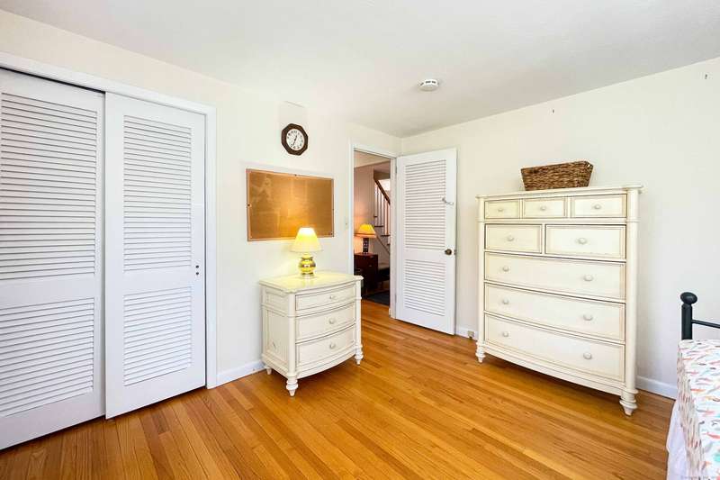 Beautifully maintained Cape offering many charming original details and the amenities you've been looking for! Step inside to find gleaming hardwood floors throughout and the living room with wood-burning fireplace. The cheery eat-in kitchen has new flooring, stainless steel appliances, and leads to the dining room and outside to the newer composite deck overlooking the yard. Convenient first-floor bedroom and full bath. Upstairs you'll find two more spacious bedrooms and the second full bath. The walk-out lower level includes a fantastic pantry with cabinetry and refrigerator, and includes a pellet stove, full sized windows and laundry area. Other features include natural gas heating, central a/c, newer roof (2018). Great location close to the town center with restaurants, shops and train station with Amtrak and Hartford Line. Welcome Home! HIGHEST AND BEST offers due by Monday, August 25th at NOON.