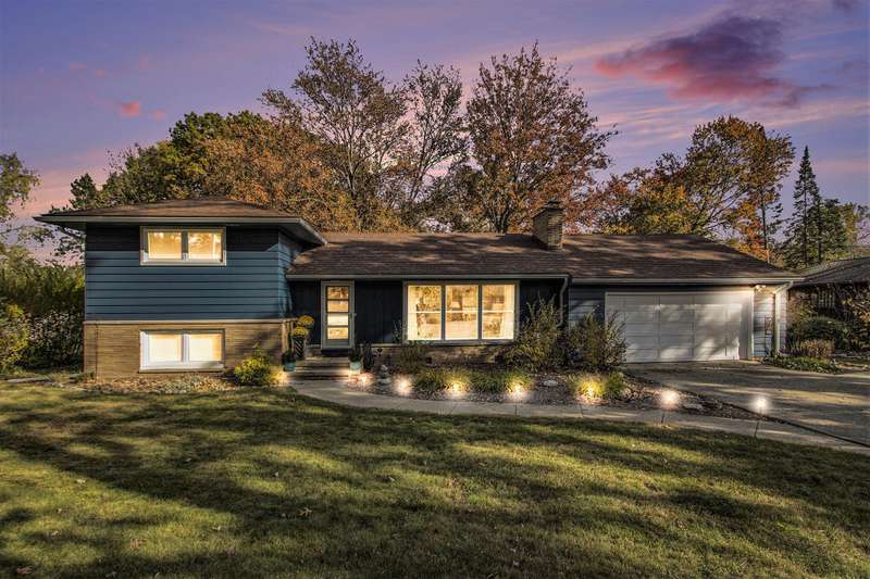 OPEN HOUSE CANCELED. Home is under contract Welcome 5129 Woodmont Drive- where space, style, and serenity come together beautifully. This meticulously maintained quad-level gem features thoughtful living space with 4 bedrooms, 2 bathrooms, and abundant storage throughout. The main level welcomes you with tons of natural light and inviting living areas. This home is packed with tasteful updates that blend comfort with peace of mind. Recent updates include Pella windows & doors, newer roof & seamless gutters, updated water softener & water heater, full fresh exterior paint job, additional 3 car parking pad, updated appliances, and more. The upper-level features 2 bedrooms, a full bathroom, and boasts a massive attic space with a full-size entry door- perfect for accessible storage. The lower levels offers additional living or hobby space with 2 bedrooms, a full bath, and an oversized family room with a fireplace. The basement utility room is bright and spacious and gives ample storage with shelves and cupboards. A stunning 3 season porch leads you outside to your private backyard with mature trees and a professionally designed patio and landscape. The large flagstone patio provides the ideal spot for gatherings under the trees or quiet evenings surrounded by nature. The backyard is fenced in with multiple gates for easy access. Car enthusiasts and DIY lovers will appreciate the oversized garage with a dedicated workshop area, offering the perfect setup for projects or extra storage. With updates throughout, exceptional care, and a location that offers both privacy and convenience, this Portage retreat is ready for you to call home.
