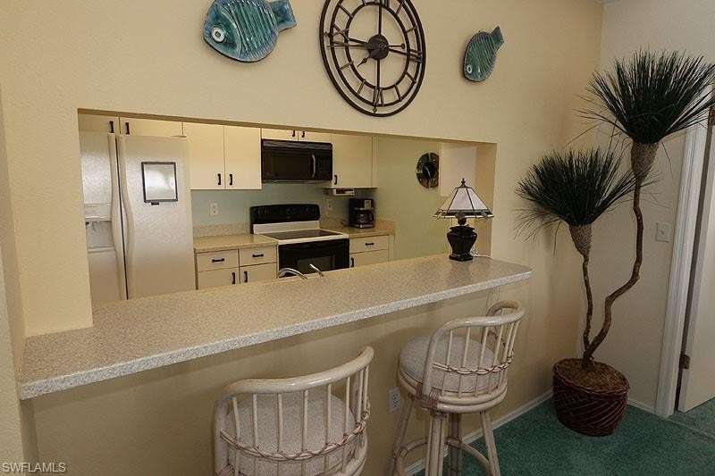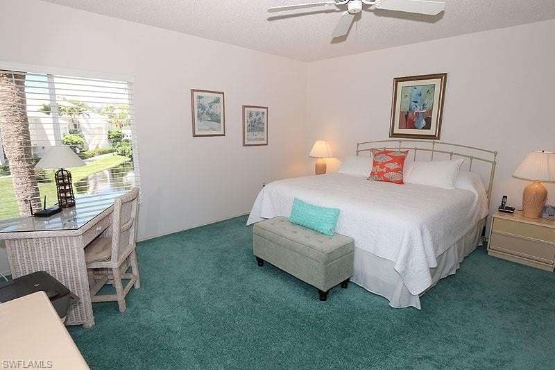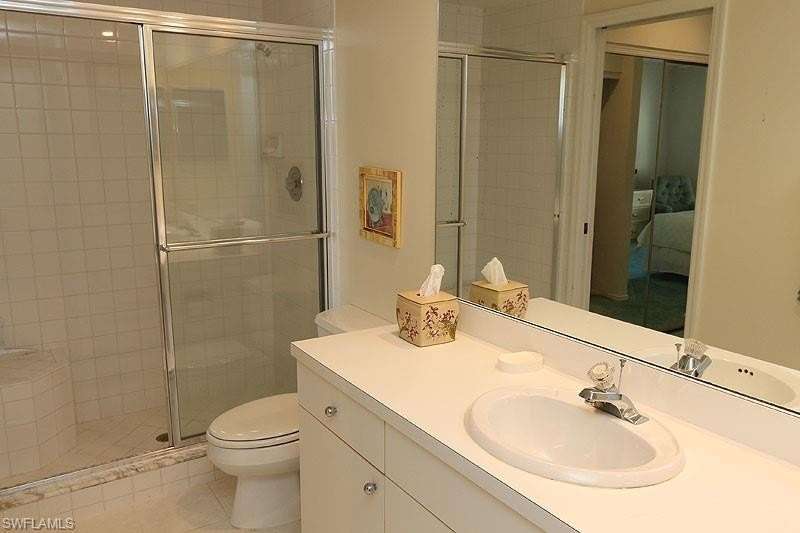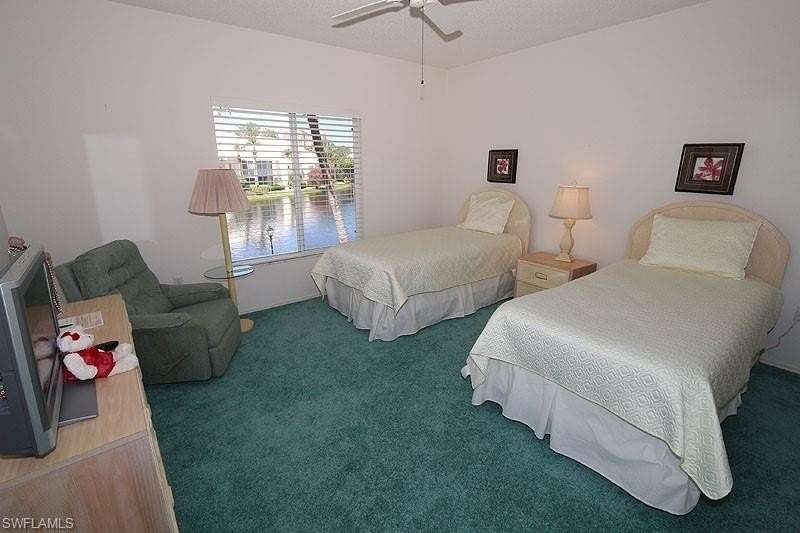Second floor immaculately maintained residence located within one of Naples' most desirable communities. Desirable southwestern exposure with expansive views of the manicured lake from the screened & glassed enclosed lanai. Split floor plan boasting two bedroom suites offering utmost privacy of all guests. Soaring ceilings gives the feeling of even more expanded living space than its already generous size of almost 1600 square feet of air conditioned living area. The living room combination consists of a leather sectional sofa and reclining chair. The wood dining room table seats six plus there are two bar stools at the breakfast bar. Amenities to Willowbrook include a heated pool & spa and social club room. Enjoy the world class amenities of Pelican Bay including two private casual beachfront restaurants, beach shuttle, beach chair & umbrella set-up service, tennis club (pay per play), community fitness center, walking trails and more.