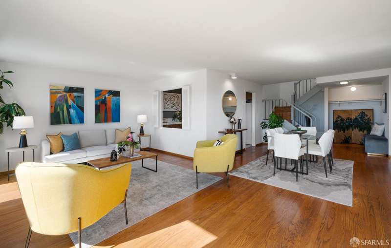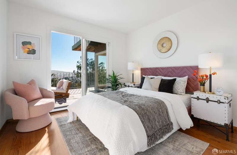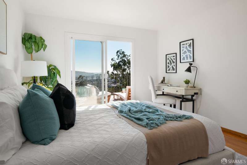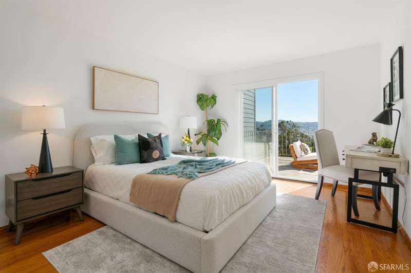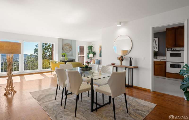 Commanding views, generous scale, solid construction, easy potential, and a great location define 408 Gold Mine Drive. Built in 1967, this mid-century home sits on Gold Mine Hill and has been in the same family for nearly 50 years, now ready for its next chapter. You can move in right away and enjoy it as is, or begin updating immediatelyeither path takes advantage of its fundamentals and strong bones. Measuring nearly 2,000 sq ft across two levels, the home has 3 bedrooms, 2 full baths, and 2-car side-by-side parking. On the lower level, two south-facing bedrooms open directly to a 250 sq ft deck shared with the living room. Oak floors run throughout, and a long galley kitchen, dining area, and living room centered around a (decorative) wood-burning fireplace frame sweeping southern views and light. Upstairs, the primary en suite spans the full floor and opens to a wrap-around patio, creating an open, airy connection to the outdoors. Set within Diamond Heights, where suburban mid-century ideals met urban infill among the steep hills, the home sits near Noe Valley, Glen Park, West Portal, and the Diamond Heights Shopping Center with its everyday conveniences. An offer review date is anticipated; please contact the listing team for details.