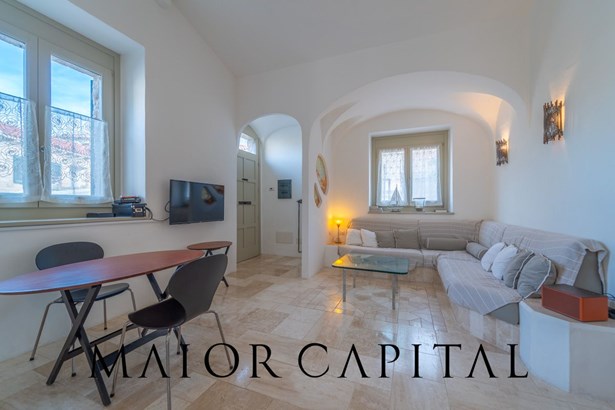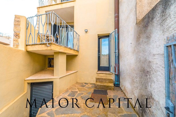 The property is completed by a 20 sqm courtyard where a characteristic Sardinian stazzo stands. This structure, with a renovation project, can be transformed into an elegant covered parking space or a private garage, offering an exclusive added value in the heart of the hamlet.
