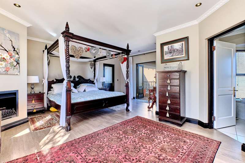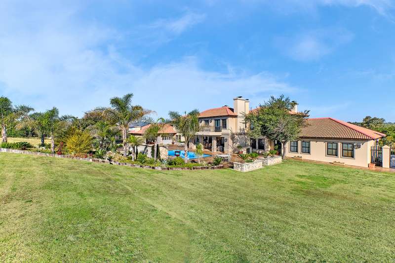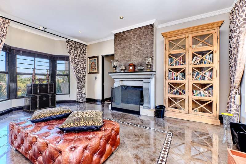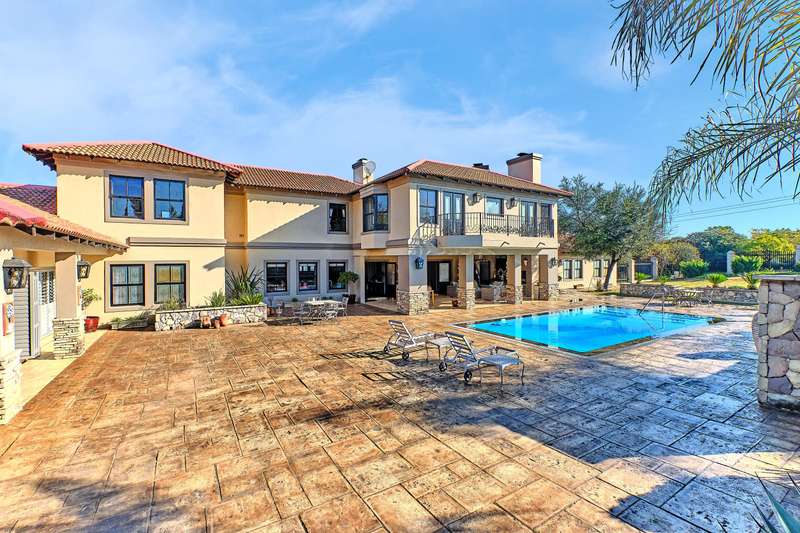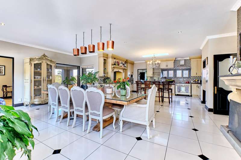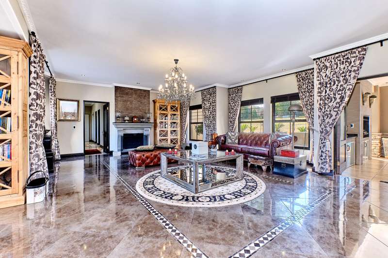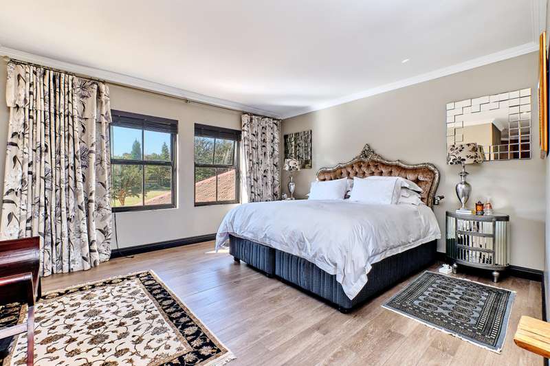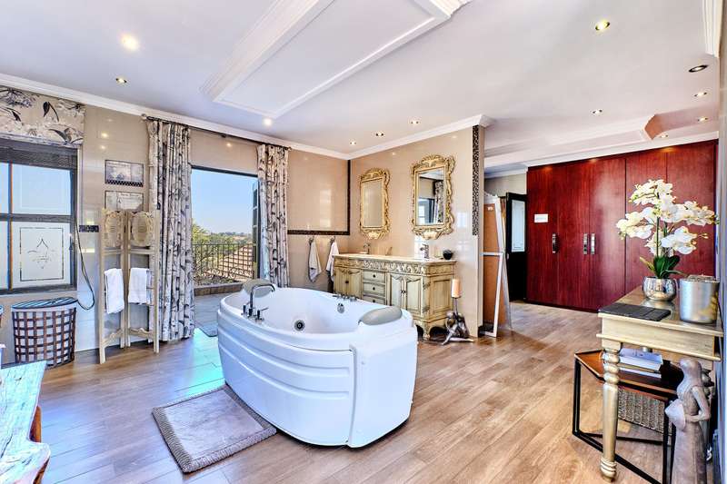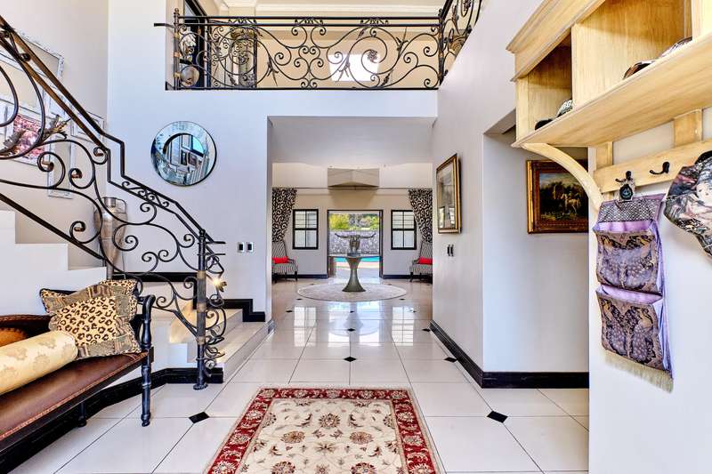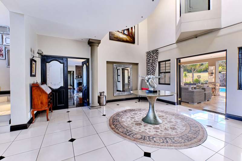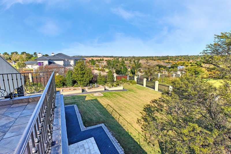 A Luxurious lifestyle on a generous estate with views. One's first impression of this magnificent home is met with a statement, grand and double volume entrance hall. This carefully considered North-facing home embraces family living and was designed with a spacious open plan layout, communal living areas and entertainment spaces for small or large social occasions. It is filled with light, character and a seamless indoor/outdoor living experience that resonates throughout this exclusive home. The ground floor offers a large guest suite with its own en suite bathroom, lounge and kitchenette and home office. More than enough secure parking for guests as well as 2 double garages. The 2nd floor offers 4 spacious bedrooms all en-suites. Large balconies with sweeping views. The Main bedroom is a suite on its own with beautiful views. Large living areas with spectacular views that open out to the expansive garden. The gourmet kitchen has ample cupboards, separate scullery and laundry, a walk in pantry. Large full staff accommodation, borehole, two Jo-Jo tanks, quadruple garages. The designer furniture can be an optional extra. This elegant home offers state of the art security, peace of mind and is the epitome of luxurious living. View by appointment only. Disclaimer: Whilst every are has been taken in the preperation of this listing we cannot be held responsible for any errors/ omissions that may occur.