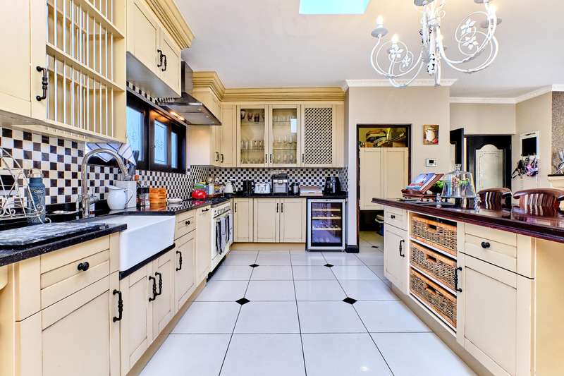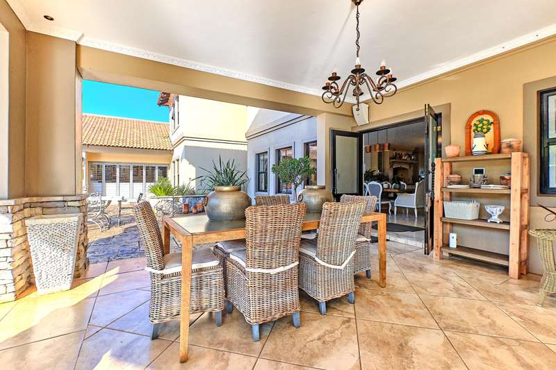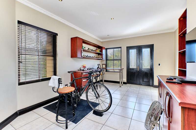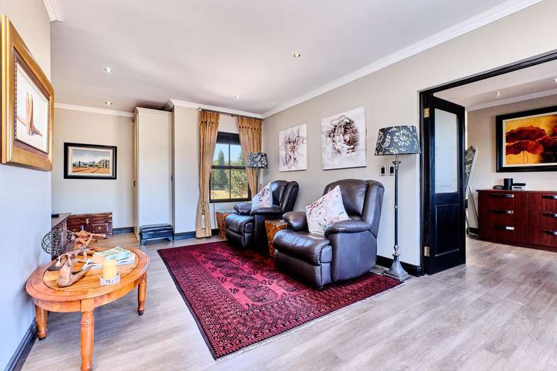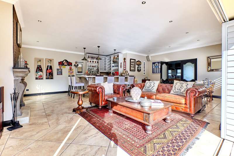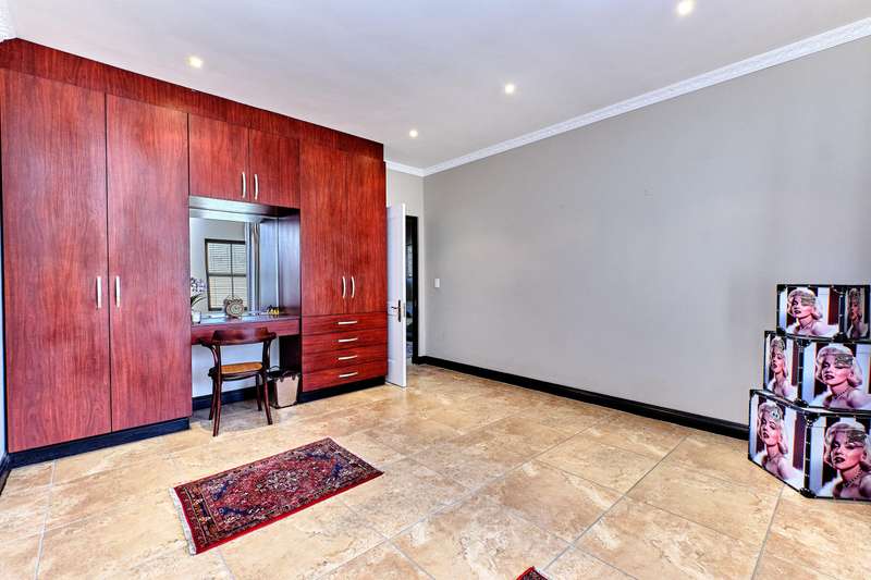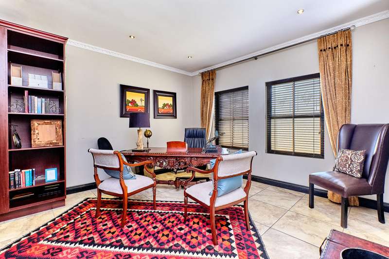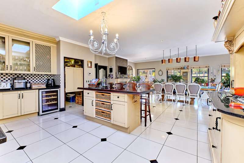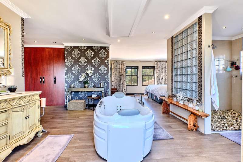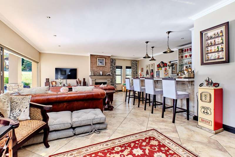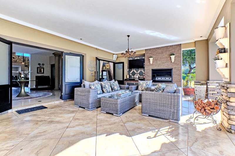 A Luxurious lifestyle on a generous estate with views. One's first impression of this magnificent home is met with a statement, grand and double volume entrance hall. This carefully considered North-facing home embraces family living and was designed with a spacious open plan layout, communal living areas and entertainment spaces for small or large social occasions. It is filled with light, character and a seamless indoor/outdoor living experience that resonates throughout this exclusive home. The ground floor offers a large guest suite with its own en suite bathroom, lounge and kitchenette and home office. More than enough secure parking for guests as well as 2 double garages. The 2nd floor offers 4 spacious bedrooms all en-suites. Large balconies with sweeping views. The Main bedroom is a suite on its own with beautiful views. Large living areas with spectacular views that open out to the expansive garden. The gourmet kitchen has ample cupboards, separate scullery and laundry, a walk in pantry. Large full staff accommodation, borehole, two Jo-Jo tanks, quadruple garages. The designer furniture can be an optional extra. This elegant home offers state of the art security, peace of mind and is the epitome of luxurious living. View by appointment only. Disclaimer: Whilst every are has been taken in the preperation of this listing we cannot be held responsible for any errors/ omissions that may occur.