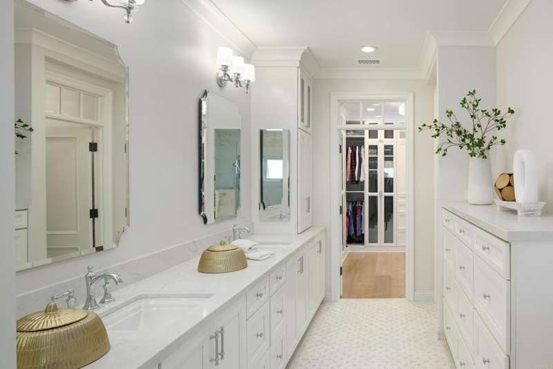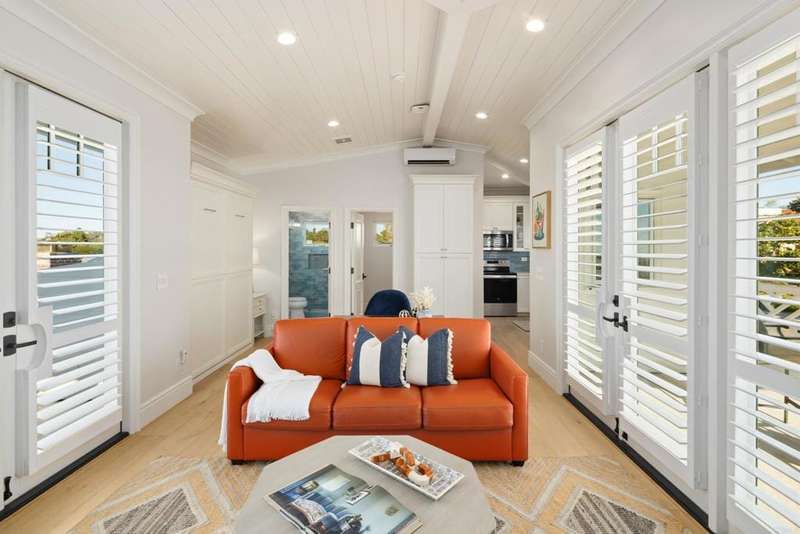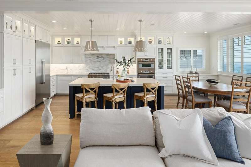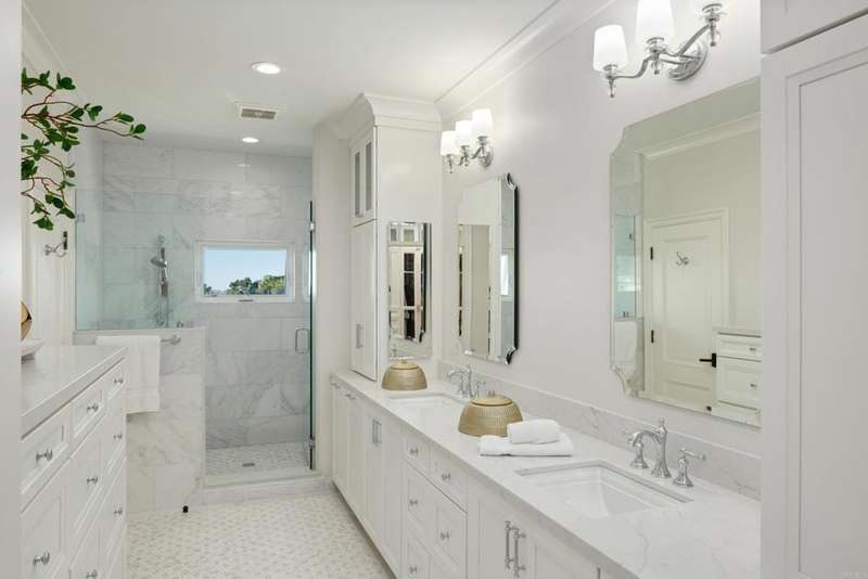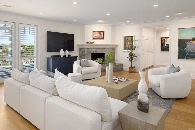 Experience comfort & luxury in this newly remodeled contemporary Hampton-style home featuring 4 bedrooms, 4.5 baths, and an expansive open-concept layout designed for modern living. The main residence is single-level with a spacious great room and well-equipped gourmet kitchen anchored by a large island that flows effortlessly out onto the newly-built TimberTech rear deck. You will enjoy breathtaking panoramic ocean and canyon views from both the great room and the custom pergola-covered deck. High ceilings with transom windows, French doors, and plantation shutters fill the home with natural light. French Oak wood flooring extends throughout, complementing the homes coastal charm. Generous wall spaces and custom lighting provide ideal areas to display art, adding a refined touch to the interiors. Each spacious bedroom includes built-ins and ensuite bathrooms featuring custom tilework and natural stone finishes for timeless elegance. Upstairs is a generous ADU that offers a full-size kitchen, bath, and walk-in closetperfect for guests, extended family, or rental income potential. The ADU has a separate entrance for privacy as well, and amazing views to both the north and south. This home beautifully blends comfortable luxury and modern sophistication, accentuating La Jolla's desirable lifestyle with impeccable craftsmanship and unforgettable views.