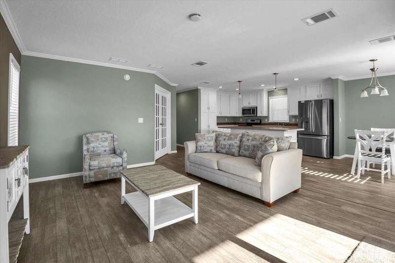 Welcome to this stunning brand-new 2024 Jacobson home, move-in ready and designed with modern comfort in mind. Offering 2 bedrooms, 2 bathrooms, and a versatile den, this thoughtfully crafted home features 1,372 sq. ft. of living space. The inviting front porch adds to its charm, while inside you'll find a bright open layout with wood cabinetry, luxury stainless steel appliances, double pane insulated windows, and a hidden walk-in pantry. Built with today's hurricane codes in mind, the home has 2x6 exterior walls for added durability, plus interior washer and dryer hookups for convenience. Additional highlights include a 12' x 12' golf cart shed with access doors and plenty of storage, along with peace of mind from multiple warranties: 1 year full-service on the home and AC (with 5-year parts), 10-year structural, 20-year shingles, and 1 year on appliances. Financing options are available for qualified buyers. Why settle for used when you can own brand new with warranties included? Located in La Casa, a quiet 55+ community nestled between Sarasota and Fort Myers, residents enjoy a serene lifestyle with natural beauty all around. The neighborhood is filled with mature trees, spacious green spaces, and eight picturesque lakes. Community amenities include two clubhouses, two heated pools, a boat ramp with access to the Gulf of Mexico, a recreation center, and a wide variety of social activities and events. Whether you're looking for an active lifestyle or a peaceful place to relax, La Casa offers the best of both.