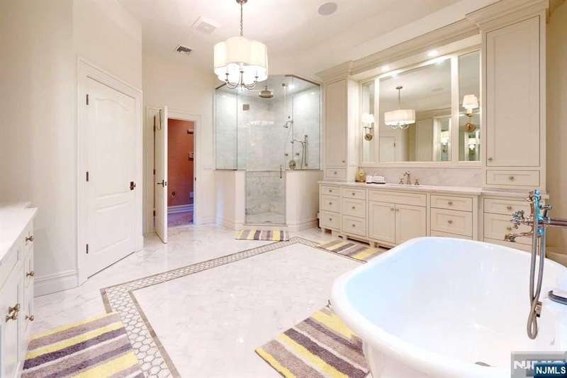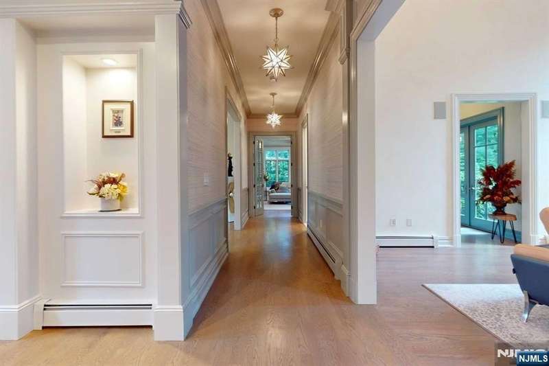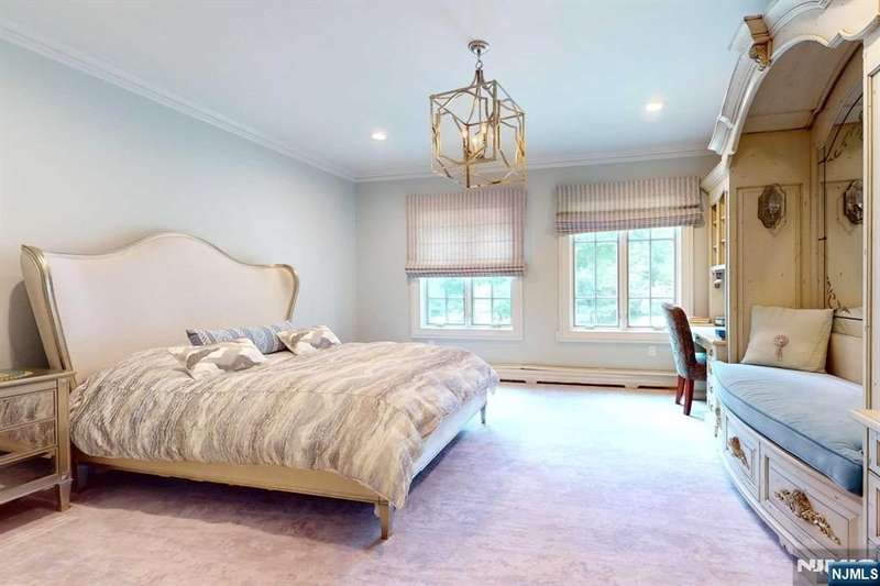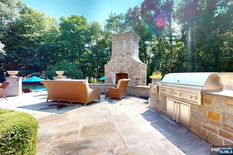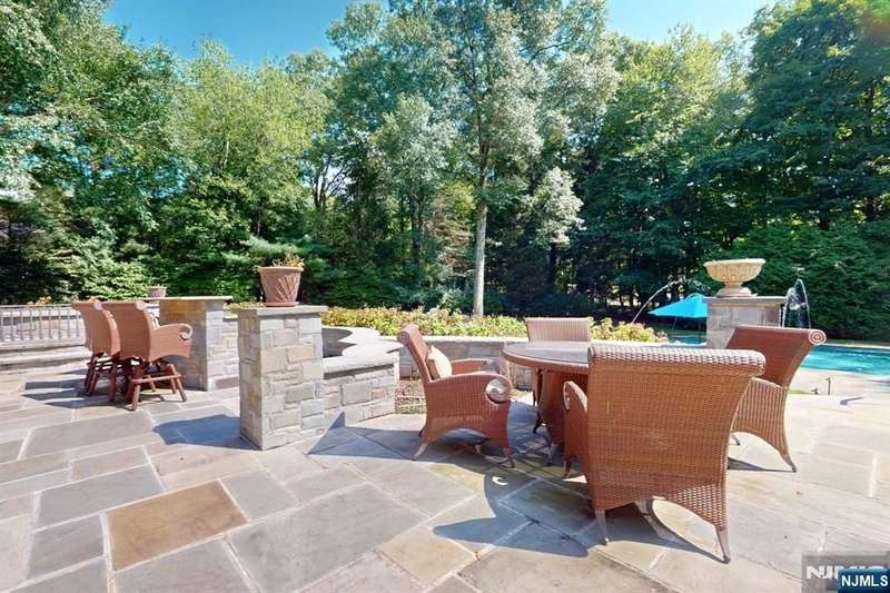 Gorgeous brick manor colonial located on Saddle River's premier street. Circular driveway leads you to this stately home. Upon entry into the two story marble foyer, you will see the spectacular curved staircase with balcony overlooking the two story great room. Meticulously chosen paint, cabinet, and floor colors in the social spaces where you will be entertaining your guests. Living room, dining room, magnificent kitchen with quartz island and Hestan appliances. Magnificent molding and built-ins throughout. Completing the first floor are guest bedroom, full bath and laundry. Upstairs is an extravagant primary suite complete with full bath, 2 walk-in closets, and sitting room. Four additional en-suite second floor bedrooms. Second staircase leads to a newly finished basement with den, full bath, golf practice range, gym, and storage. Stunning property with outdoor entertainment, patios, heated gunite pool, spa, kitchen. Newly updated security system. Not to be missed!