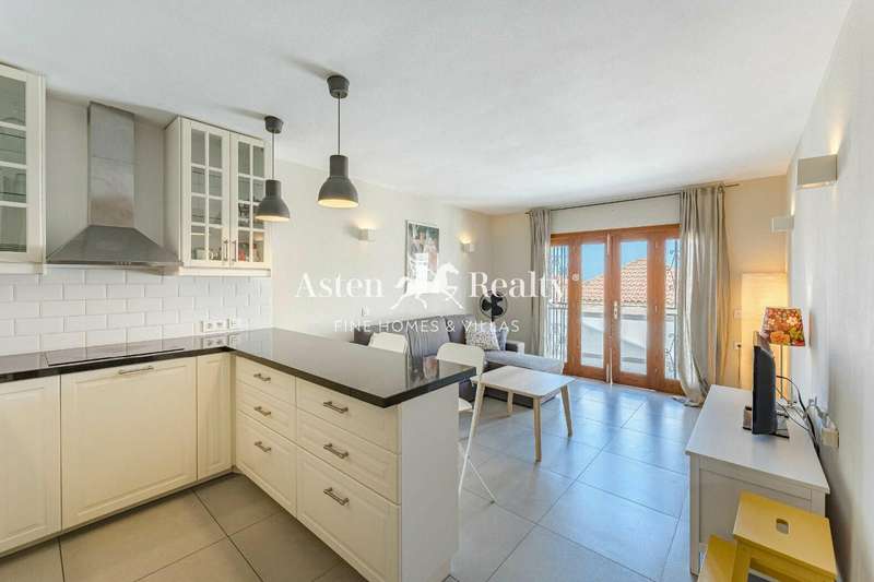The property consists of one bedroom, one bathroom with bathtub, a bright living room with open plan kitchen and a terrace with sea and mountain views.
