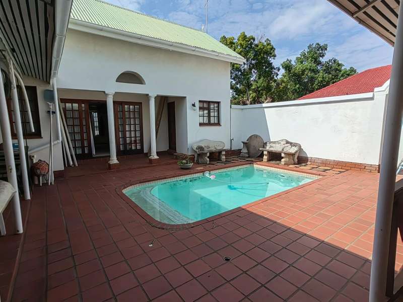 Embrace the timeless elegance of this captivating 5-bedroom, 3-bathroom property situated on a sprawling 1000 sqm stand. This home exudes old-world charm and boasts an array of features that will delight discerning buyers. Step onto the inviting wrap-around "stoep" and experience the charm of yesteryear. The established garden with a sparkling swimming pool creates a serene outdoor oasis perfect for relaxation and gatherings. Inside, the home features a grand lounge, dining room, and a well-appointed kitchen complete with a center island work surface, gas hob, and convenient scullery area. The kitchen is designed for both functionality and style, ideal for culinary enthusiasts. Entertain guests effortlessly on the spacious patio area, overlooking the pool. With 2 garages and a carport accommodating up to 4 vehicles, there is plenty of space for parking and storage. Additional amenities include domestic quarters with a bathroom, providing comfort and convenience for live-in staff. Ample storage space in attic and a wine cellar offer practical solutions for organization and hobby enthusiasts. Located in a desirable area, this property offers a blend of luxury, comfort, and functionality. It's an exceptional opportunity to own a piece of history with modern amenities. If you appreciate classic charm combined with modern comforts, this home is a must-see. Contact us today to schedule a viewing and discover the allure of this magnificent property