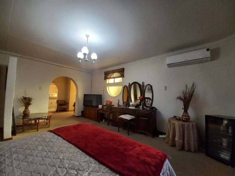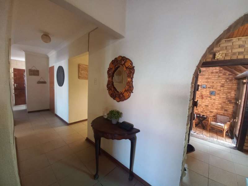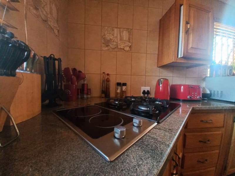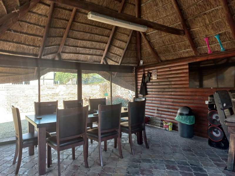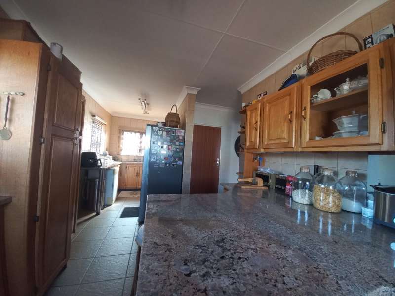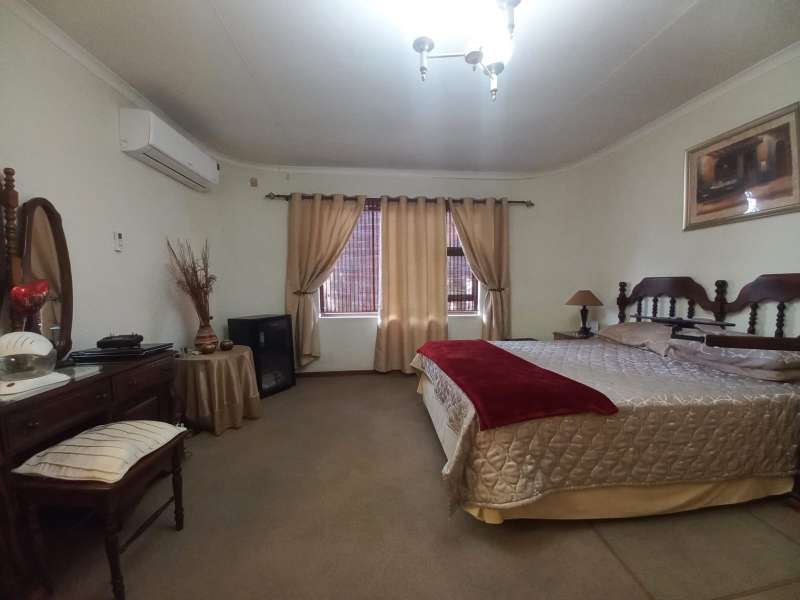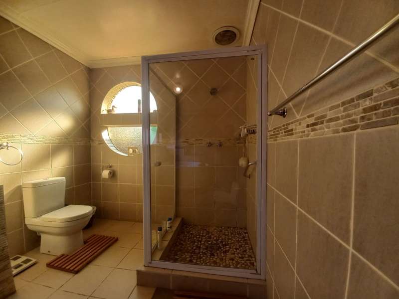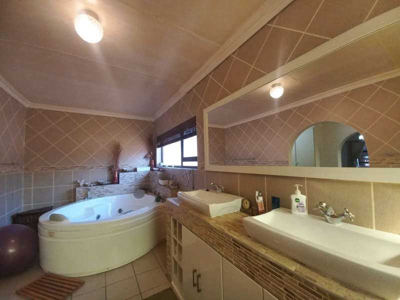 Step into Elegance!! – A beautiful foyer welcomes you and flows seamlessly into the open living area – perfect for stylish living with the entertainment bar area. Dedicated dining area apart from the living room, creating a special space for family bonding at dinner time. Cozy closed patio that double as a versatile space – perfect for a home study or simply a quiet spot to sit back, relax, and enjoy a good book. The upper level features a cozy lounge and relaxation space opening to a balcony with breathtaking views, perfect spot to unwind and take in the scenery. Kitchen, complete with elegant tops and a built-in gas stove for the perfect cooking experience and enough storage facility. This home offers 5 generously sized bedrooms, 4 bedrooms with full cupboards and air conditioning. The main bedroom boasts a luxurious en-suite with his and hers closets, as well as his and hers basins for ultimate comfort. Separate flatlet featuring a private entrance and bathroom, perfect for independent living. Entertain in style under the spacious outdoor lapa while the sparkling swimming pool adds charm to your summer nights. Automated double garage and a built-in storage inside the garage. Generous carports, ideal for large families or car enthusiasts. Additional Features; • 4 x 10 000 litres jojo tanks with pumps • Water purifying system • Laundry room for convenient washing • Wi-Fi . Generator that kicks in automatically • Green house/ storage facility Homes like this don’t last long – Call today to book a viewing.