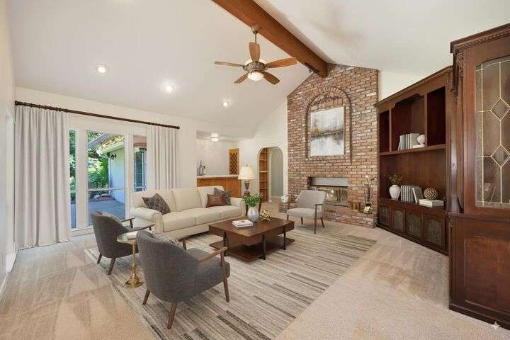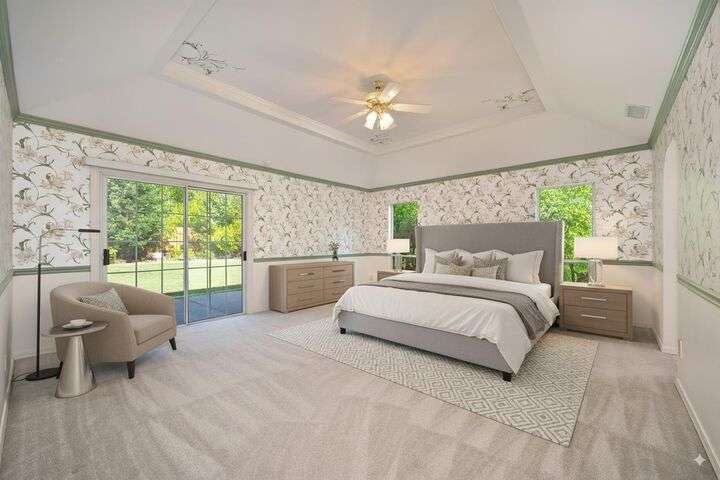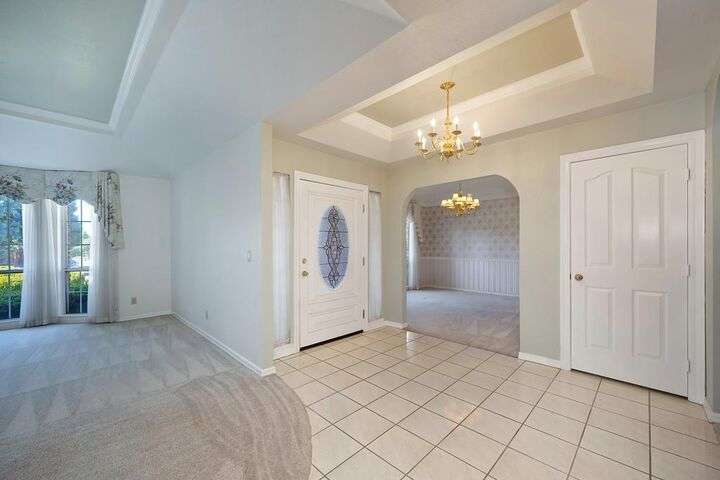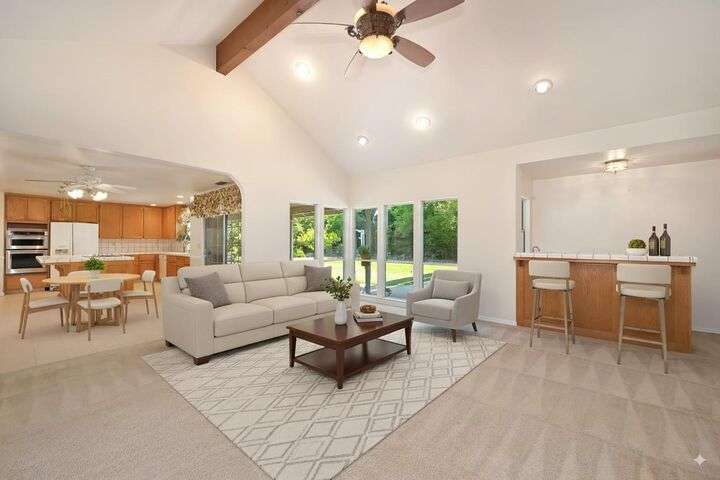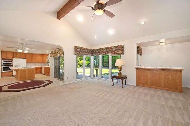 Discover this beautifully crafted, classic, traditional-style home, tucked away at the end of a quiet cul-de-sac. Impressive 3,322 sq ft of single-level living and a rare 4-car garage, this property delivers generous space, timeless design, and quality construction. The open-concept floor plan is designed for both everyday comfort & effortless entertaining, featuring a spacious kitchen with a large island, fresh carpet cleaning, & a dedicated laundry room with a sink. Vacant, move-in ready, and available for a quick escrow! Recent upgrades include a newer roof, multiple AC units, & ceiling fans throughout for year-round comfort. Step outside to a covered backyard patio overlooking a serene greenbelt perfect for relaxing evenings or lively summer gatherings. Private RV access, Expansive primary suite w/ dual sinks & a jetted tub, Tons of attic storage. No Mello-Roos or HOA fees; fantastic opportunity for buyers seeking privacy, space, and quality in a desirable area.