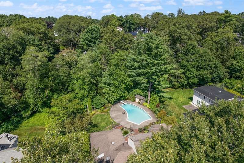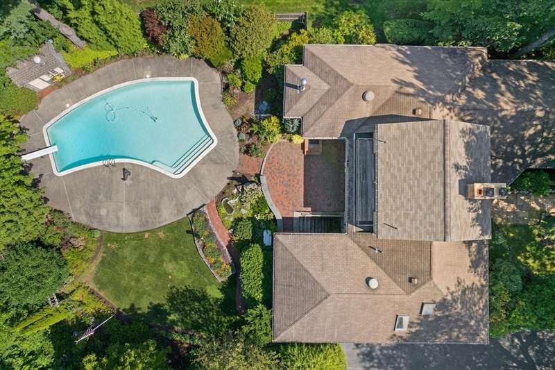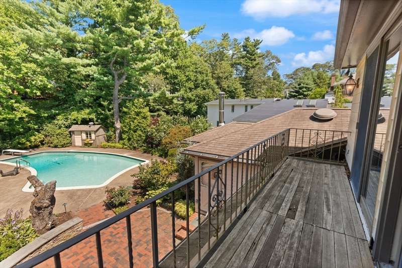 Step into timeless potential in this architecturally striking home, set on exquisitely landscaped grounds, in Belmont Hill, that feel like a private resort. From the marble foyer to the elegant step down living room with a marble fireplace, every detail offers the chance to craft something extraordinary. A custom built formal dining room, created for hosting on a grand scale, complements the flowing floor plan. The kitchen, informal dining, and family room overlook the lush rear yard and gunite pool, making entertaining seamless. The generous primary suite boasts a walk-in and additional closets, spa like bath with skylights, and serene garden views. Two more bedrooms with en suite baths, a stately office with fireplace, and a versatile upstairs loft with a balcony add to the appeal. The retro lower level adds personality or potential. The tropical feeling backyard is lush, private, and alive with birdsong. This is more than a home. It's a canvas waiting for your masterpiece.