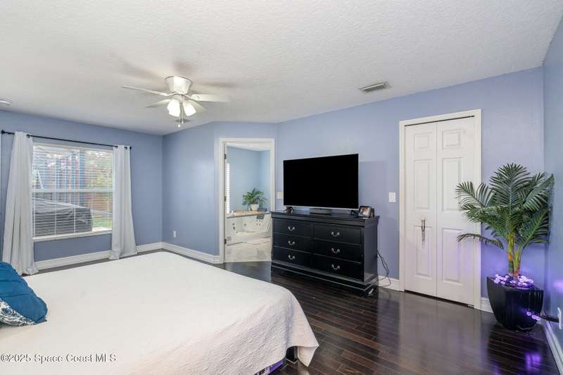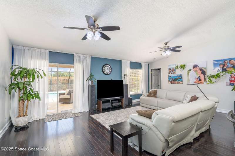 Discover comfort and style in this beautifully remodeled 3 bed, 2 bath home in the sought-after Saddlebrooke Community of West Melbourne. Featuring a split floor plan and engineered hardwood floors throughout the main living areas, this home is designed for both function and elegance. The kitchen boasts granite countertops, espresso stained cabinets, stainless appliances and large center island, perfect for everyday living or entertaining. Relax year-round in the screen-enclosed saltwater pool or retreat to the spa-like primary bathroom with a jetted freestanding tub and glass door shower. Additional features include vaulted ceilings, a tankless water heater, hurricane shutters, and a 2-car garage. A rare find with luxury touches throughout!