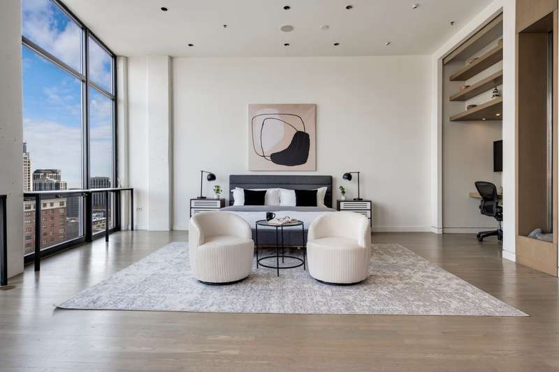 Step into a realm of unparalleled sophistication with this 6,000+ square foot penthouse at 1530 S State Street, where grandeur meets contemporary design. This unique duplex penthouse, designed by STL Architects, boasts 15-foot ceilings and expansive floor-to-ceiling windows that frame the awe-inspiring Chicago skyline. With three different exposures, each view is more breathtaking than the last, offering an unrivaled panorama that changes with the seasons and never gets old. The extraordinary residence is a testament to luxury and attention to detail, featuring one-of-a-kind architectural elements and the highest quality finishes. Custom-cut leather floors in the great room with COR-TEN steel walls running the entire length of the EIGHTY FOOT LONG ROOM (spelled that out to make sure don't think it's a typo) create a tactile experience unlike any other, while radiant heating along the windows ensures comfort and clear windows no matter the weather outside. The home includes four generously-sized bedrooms and five exquisite full bathrooms, each crafted with precision and richness. The property has 2 outdoor spaces; a sizable balcony in the primary suite and an oversized private roof deck( The only one in the building!) It offers a secluded escape with stunning views.Privately positioned at the end of the top floor, this home guarantees ULTIMATE privacy and exclusivity. 2 heated garage spots are included in the price. 3 more heated parking spots are available. Located in the vibrant South Loop, the building offers full-service amenities including 24/7 door staff, on-site management, a top-tier fitness center, on-site dry cleaning services and more. This penthouse is not just a residence, but a piece of art waiting to be cherished! Discover luxury living redefined in this South Loop masterpiece- a true must-see for discerning buyers seeking a home that stands a cut above the rest!