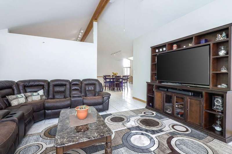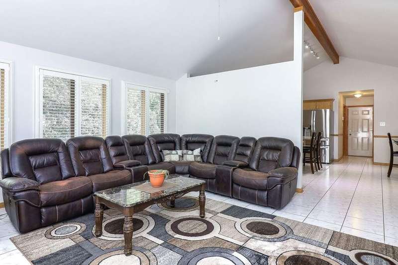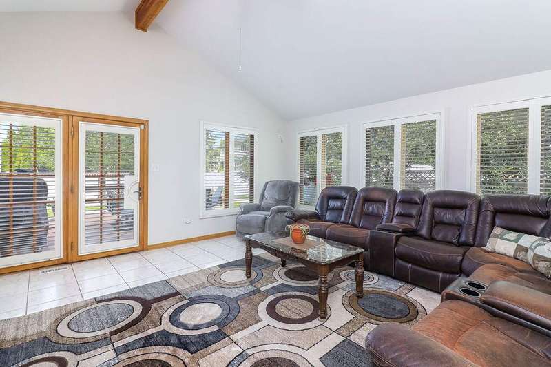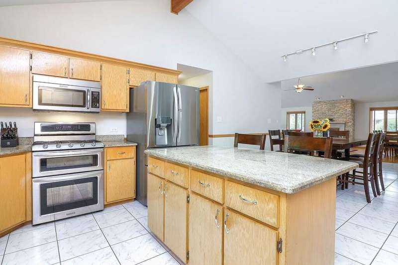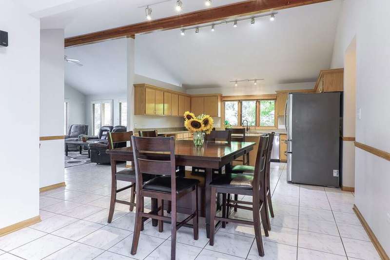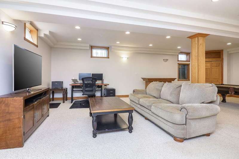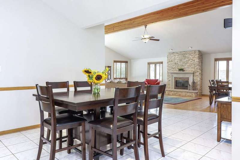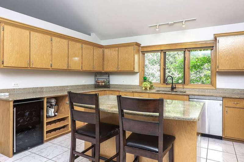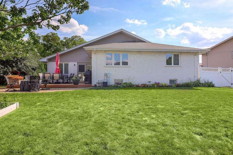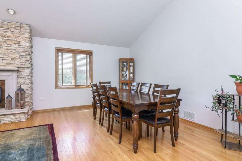 From the moment you walk in, the beamed ceilings, expansive windows, and cozy stone fireplace create a wow-worthy space that instantly feels like home. Step into the heart of the house-a stunning great room that flows effortlessly into an open floor plan, offering over 3,500 square feet of finished living space designed for comfort, function, and style. The spacious kitchen features stainless steel appliances, a center island, and a built-in beverage fridge-perfect for both casual meals and entertaining. Just off the kitchen, a cozy living room opens to a paver patio and deck, extending your living space into the large fenced-in backyard. All four bedrooms feature hardwood floors, and the fresh interior paint gives the entire home a clean, updated feel. Solar powered skylights add even more warmth and brightness. Sensors allow them to close automatically is they sense rain. For added convenience, the main floor laundry keeps daily routines simple. The large finished basement offers flexible space for recreation, hobbies, or a home office, and a generous crawl space provides excellent storage. Set on a quiet cul-de-sac in sought-after Brookside Glen, you'll love being part of a vibrant, welcoming neighborhood with winding paths, parks, and easy access to shopping, dining, and top-rated schools. Located in Tinley Park, one of the area's most desirable suburbs, you'll also enjoy a strong sense of community, great local events, and a convenient commute with nearby Metra and highway access. This well-maintained 3-step ranch blends space, charm, and location in all the right ways.