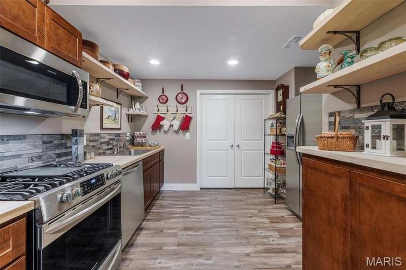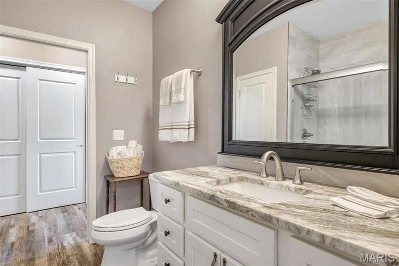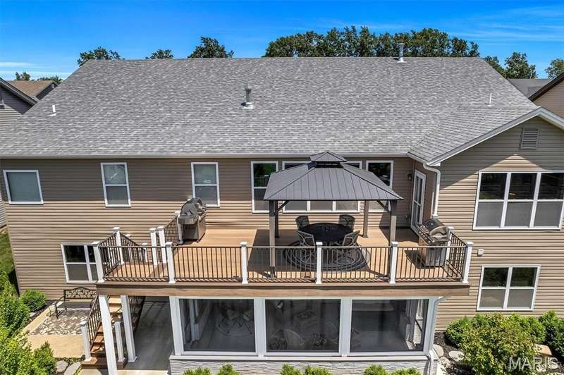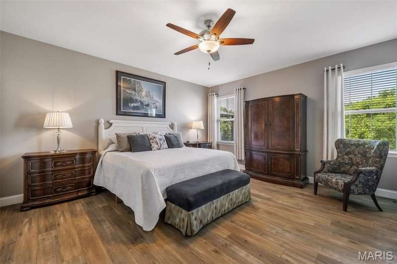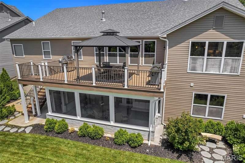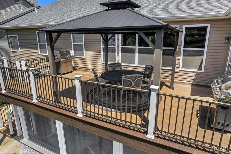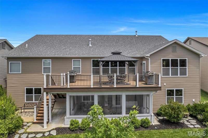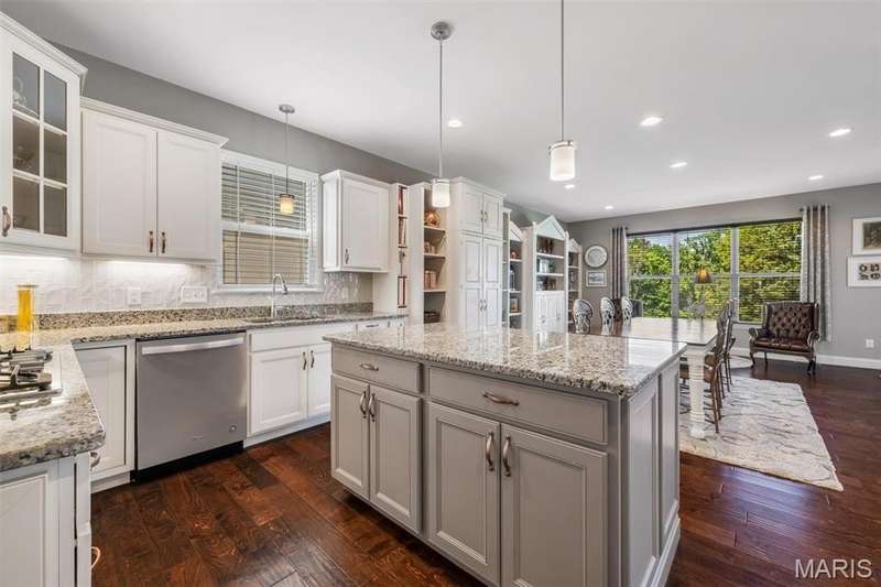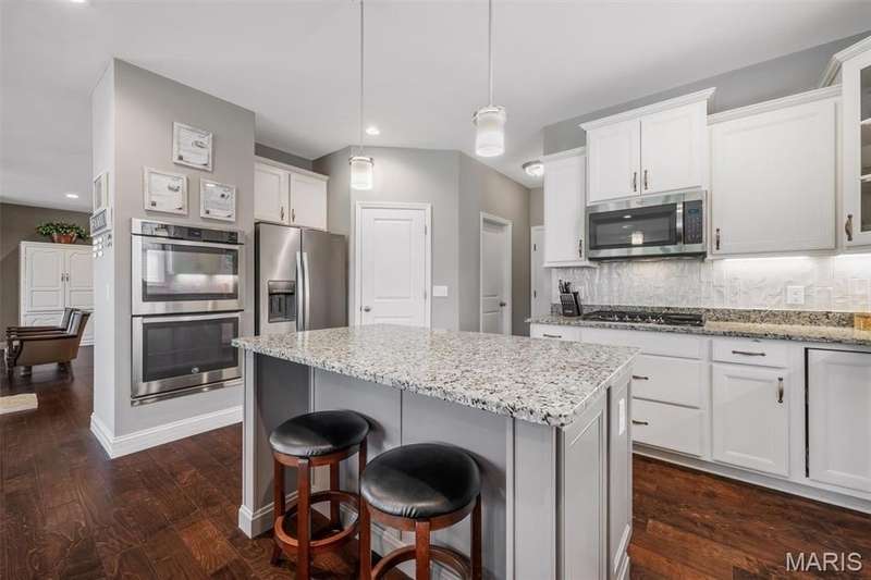 A truly stunning 4200 sf walkout ranch with 2600 sf on the main level and 1600 sf in the LL that's only $178 per sq ft. 5 bedrooms (4 on main level, one in the lower level) and 3.5 baths. Open floor plan with a large great room, dining room, stacked stone gas fireplace and 5 window wall. The beautiful kitchen has a gas cooktop, double ovens, 42" cabinets, granite counters, SS appliances, walk-in pantry, large breakfast room. Hardwood floors thru-out the main level, 9' ceilings, ceramic tile in baths and laundry room, 75 gallon hot water heater, low E tilt-in windows, inground sprinkler, 3 car garage. The master bed has a large walk-in closet and lux bath, separate tub, shower, 2 vanities. The 14x31 designer, composite deck with a 10x10 gazebo has a great view. The LL is spectacular! Perfect for in-laws, visitors or family members featuring a 2nd full kitchen, bar, dining, huge 21x47 family room leading to a terrific screened 12x25 porch, luxury bath, spacious bedroom and a 13x11 flex room perfect for exercise, office or music room. All this and still 1000 sq. ft. of storage area. The lush backyard landscaping offers a great view. A must see to appreciate! Show this one.
