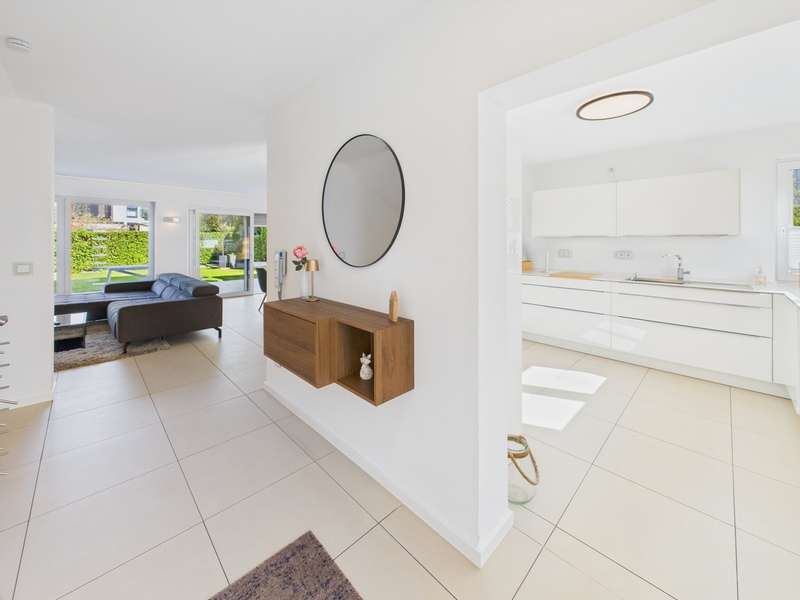 VON POLL IMMOBILIEN presents this modern semi-detached house in a quiet residential area of Hürth-Stotzheim - a home for families who value comfort, efficiency and spaciousness. Built in 2009, the property impresses with a successful combination of well thought-out architecture, high-quality fittings and a well-kept ambience. With a living space of approx. 203.73 m², spread over five to six rooms on four levels - including a partially converted basement - this home offers a well thought-out room layout with versatile usage options. There is also a reserve space in the attic for a further bathroom, which provides additional flexibility for future living requirements. On the first floor, you are welcomed by a welcoming entrance area with a separate checkroom and modern guest WC. The heart of the house is the spacious living and dining area with open-plan kitchen - an ideal place to relax and get together. Large windows create a bright, inviting atmosphere, while the adjoining terrace and lovingly landscaped garden invite you to linger outdoors. Particularly practical: the garage with two doors opposite each other not only allows vehicles to be parked safely, but also provides easy access to the garden area. The upper floor accommodates two spacious bedrooms, each with a comfortable dressing area. A stylishly designed bathroom with a floor-level shower, bathtub and high-quality sanitaryware completes this level. The converted top floor offers a further room that can be used flexibly - whether as a bedroom, home office or retreat for teenagers. The already prepared expansion reserve allows for the installation of a second bathroom. In the comfortably converted basement, you will find another bright bedroom or study as well as a separate laundry room and additional storage space. Underfloor heating in all living areas - including the basement - ensures a pleasant indoor climate all year round. The well thought-out technical features are particularly noteworthy: triple-glazed plastic windows with electric shutters and BUS control, low-maintenance district heating, a modern fitted kitchen included in the purchase price and a 5,500-liter cistern installed in the garden round off the sustainable living concept of this property. In short, this semi-detached house combines functionality, quality and living comfort - perfect for families or discerning couples looking for a new home with future prospects. Contact us for more information or a personal viewing!