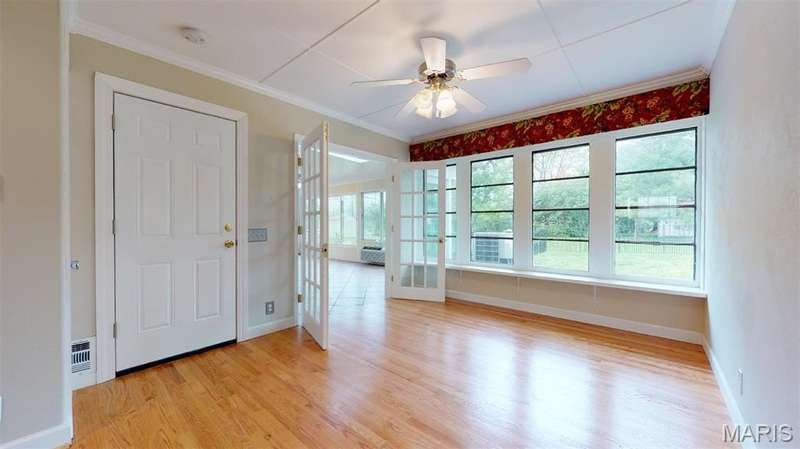 OPEN SUNDAY, 11/9, 1–3 PM! Welcome to this bright and spacious mid-century ranch tucked away in the semi-private Tealwood neighborhood of eastern Creve Coeur. This thoughtfully updated, single-level home (no stairs!) offers the perfect blend of comfort, convenience, and character. Step inside to find 2,500 square feet of easy living, featuring 3 bedrooms and 3 full bathrooms. The large primary suite serves as a true retreat—complete with a walk-in closet, dual-sink bath, its own HVAC system, and private access to the yard and patio. Two additional spacious bedrooms and full baths provide plenty of room for family or guests. Enjoy morning coffee in the cheerful breakfast nook, prep meals in the fully equipped kitchen (all appliances less than 3 years old), or spend a quiet afternoon in the glass-enclosed sunroom with French doors opening to the back patio. The home also includes a living room, family room, and dining area, two decorative fireplaces, original hardwood floors, and a utility room with a newer washer and dryer. Outside, you’ll find a double-sized lot with fenced greenspace—ideal for pets or outdoor relaxation. A two-car garage with remotes and lawn care included in rent add to the ease of living here. Located within Ladue’s top-ranked school district (Conway Elementary) and walking distance to MICDS, Bayer, Venable Memorial Park, and Stacy Park, this home offers both tranquility and connection. You’re also just minutes from convenient dining and retail, 15 minutes to major hospitals, and 20 minutes to Forest Park or Lambert Airport. Tenant pays: water, gas, electric, and internet. Landlord covers: trash, sewer, and lawn/garden care. Requirements: 600+ credit score, no past evictions or bankruptcies, and income at least 3x rent. Come see why life unfolds so easily here—your new home awaits!