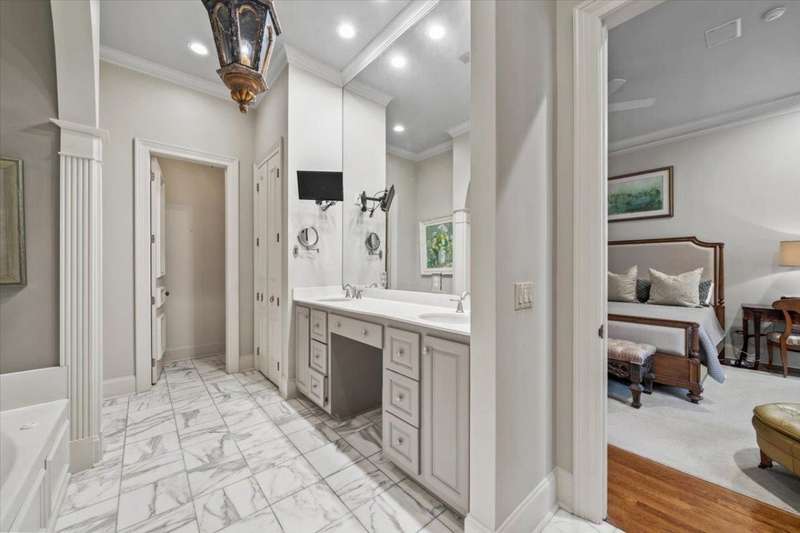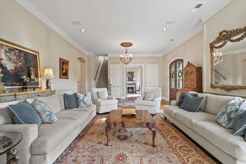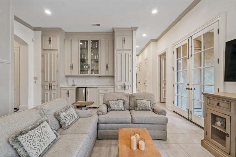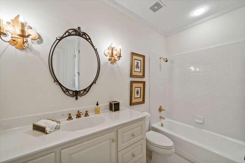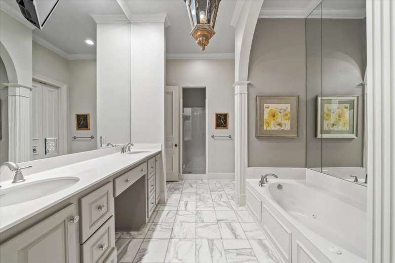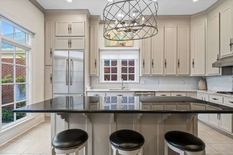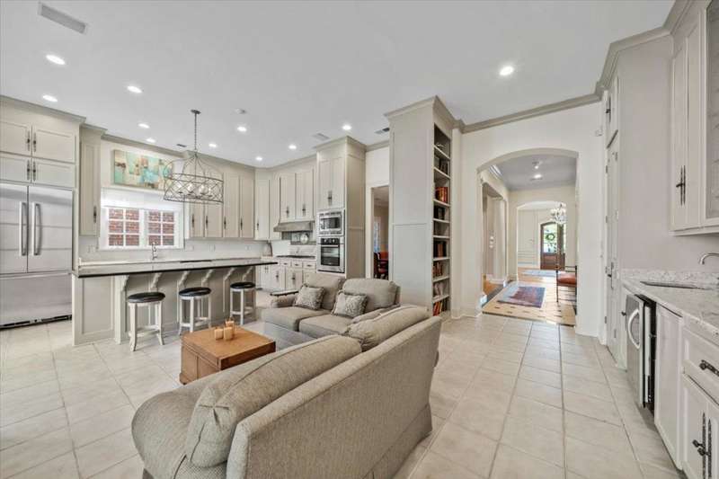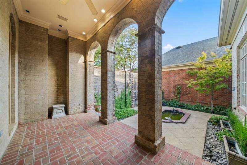 Stunning 4 bedroom, 5 bath home in a gated community offering privacy and luxury. The beautifully designed kitchen features a gas cooktop, abundant storage, elegant finishes, and great natural light. Entertain in the spacious dining room or relax by one of three fireplaces in the inviting living areas. A dedicated office provides the perfect workspace. Upstairs, a versatile bonus room with a kitchenette makes an ideal guest suite or second living area. Enjoy outdoor living on the charming brick patio with a soothing fountain. A perfect blend of comfort, function, and style.