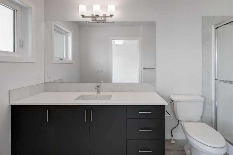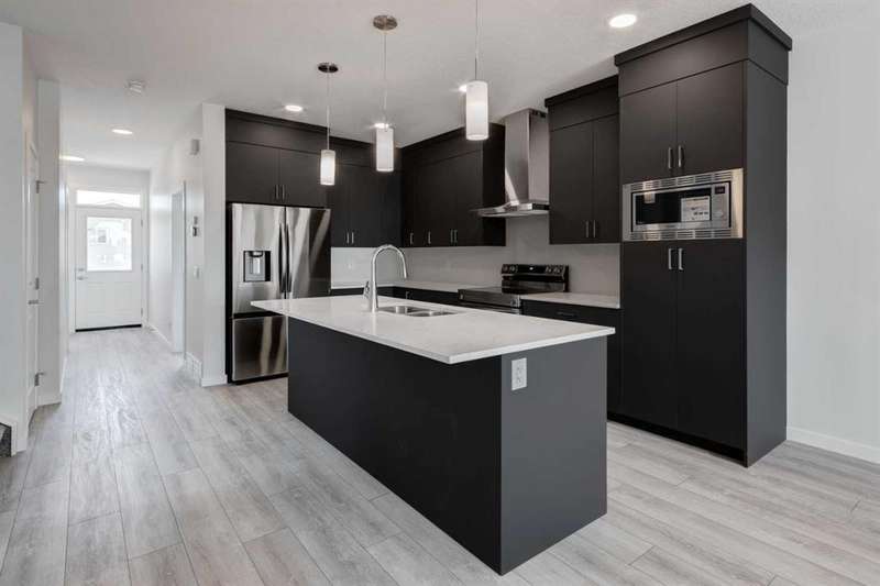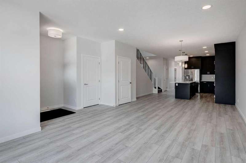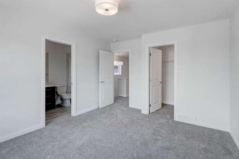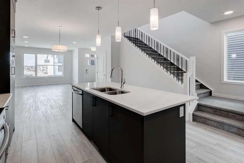 Introducing the COHEN: an amazing, BRAND NEW attached home by EXCEL HOMES offering 1733 SF above grade of upgraded luxury! Nestled in the vibrant Northeast community of Livingston. Step into a life of luxury and convenience with this stunning residence, where every detail has been meticulously crafted for comfort and style. Enjoy the benefits of living in an established neighborhood that brings a plethora of amenities right to your doorstep, along with swift access to major highways. The COHEN offers a sprawling 1733 square feet of thoughtfully designed living space, perfect for both families and entertaining. The open floor plan, complemented by neutral designer tones, creates a welcoming atmosphere that is both elegant and comfortable. The chef-quality kitchen stands as the heart of the home, equipped with ceiling-height cabinets, pot/pan drawers, and upgraded stainless steel appliances, including chimney fan and built-in microwave. The expansive engineered stone countertops, a large island with seating, and a convenient pantry make it a dream kitchen for those who love to cook and entertain. The main floor also features versatile luxury vinyl plank flooring. Uniquely ON THE MAIN FLOOR, you'll find a BEDROOM & FULL 4 PCE BATHROOM. Ascend to the second level where leisure meets luxury in the large central bonus room — ideal for movie nights and family gatherings. The primary bedroom is a true retreat, boasting a walk-in closet and a spa-like ensuite with stone vanity tops. Additionally, two more generously sized bedrooms provide ample space and easy access to the main bathroom. The convenience continues with a laundry room (w/folding counter), strategically located on the same floor. The possibilities extend into the undeveloped basement that has separate SEPARATE SIDE ENTY & ROUGH IN'S FOR 2 BEDROOM LEGAL SUITE (with city permits & approvals)... the utilities are tucked away for easy development. Step outside to a southeast-facing backyard that's perfect for relaxation and outdoor activities. You'll love the convenience of the REAR DOUBLE DETACHED GARAGE (not yet built - seasonal item)! Don't miss the chance to own this never-lived-in gem with quick possession available. Experience the blend of luxury, comfort, and convenience in Livingston—welcome to your new dream home at the COHEN. This home will include front & back yard sod. Also includes complete interior sprinkler system to main and upper floors!