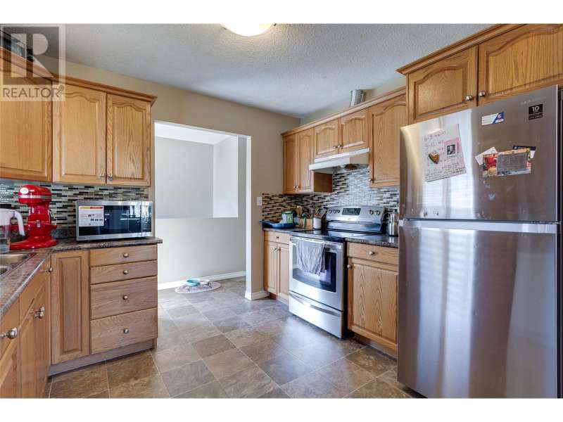 Bi-level home with 2 bedroom legal suite plus a workshop. Upstairs: Living room, dining room, kitchen, 3 bedrooms, 1 bath, laundry, deck in backyard. Well kept home both up & down with two laundries, ideal location in a family oriented area, huge fenced yard, near schools & UBCO & transit. It has oversized detached, insulated & dry walled garage with 10' ceiling height, new garage door & a man door access-great for a shop. Plenty of parking for all. (id:58403)
