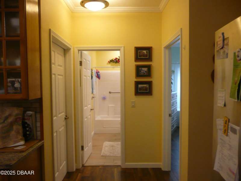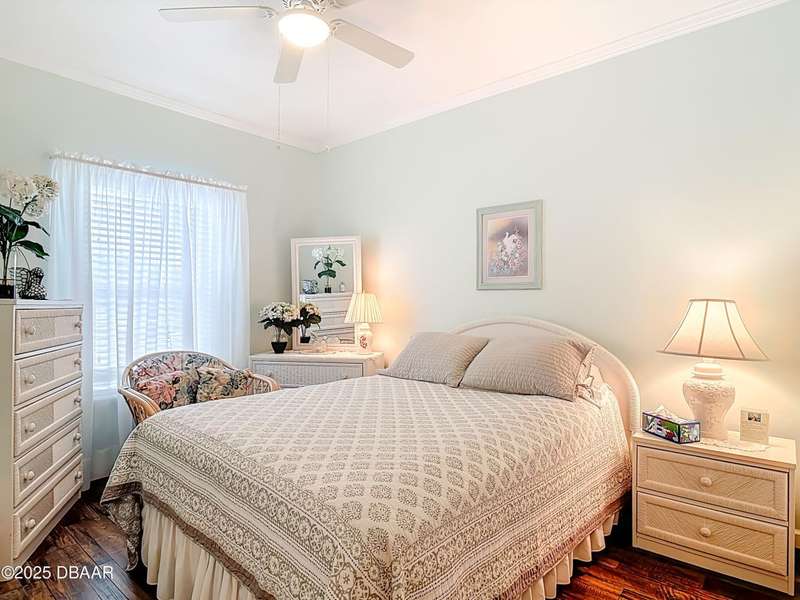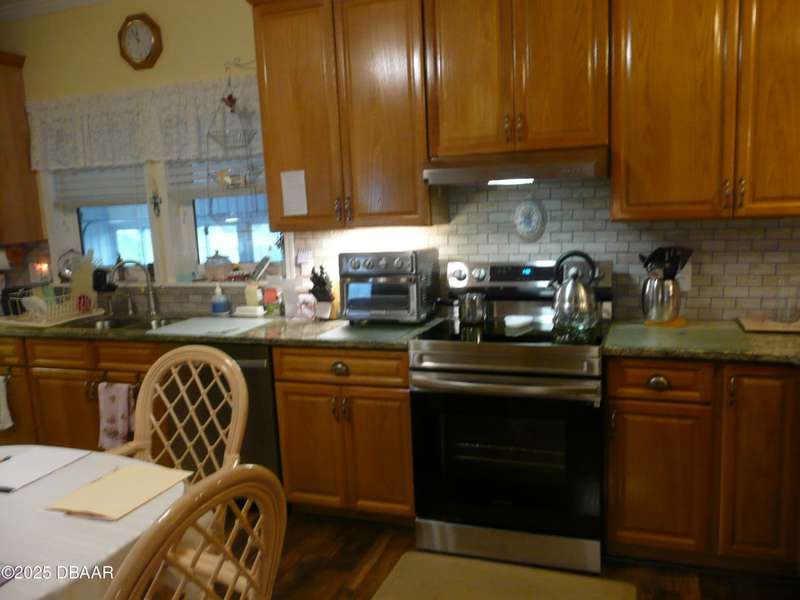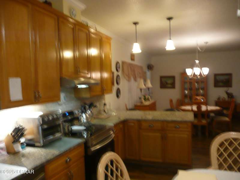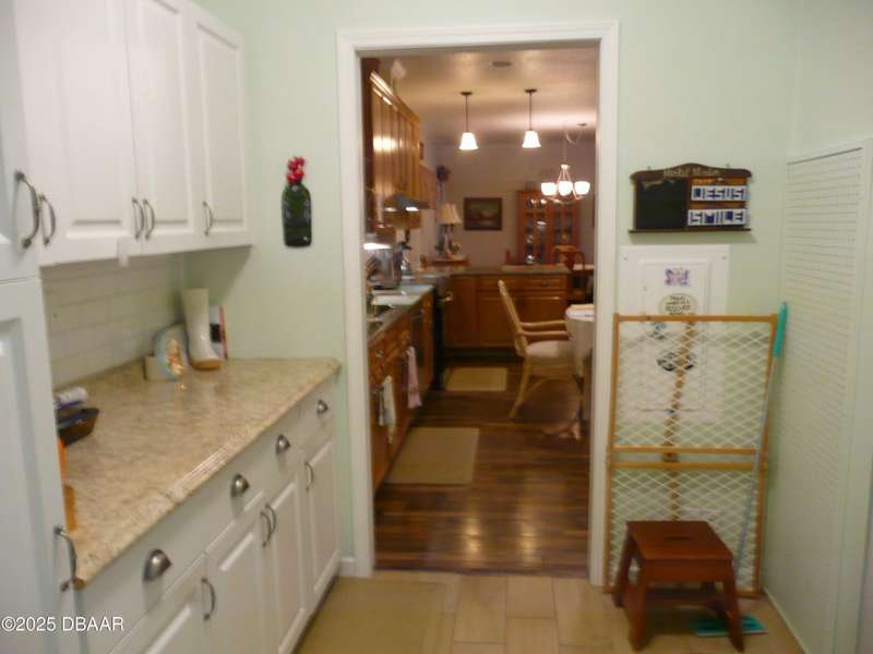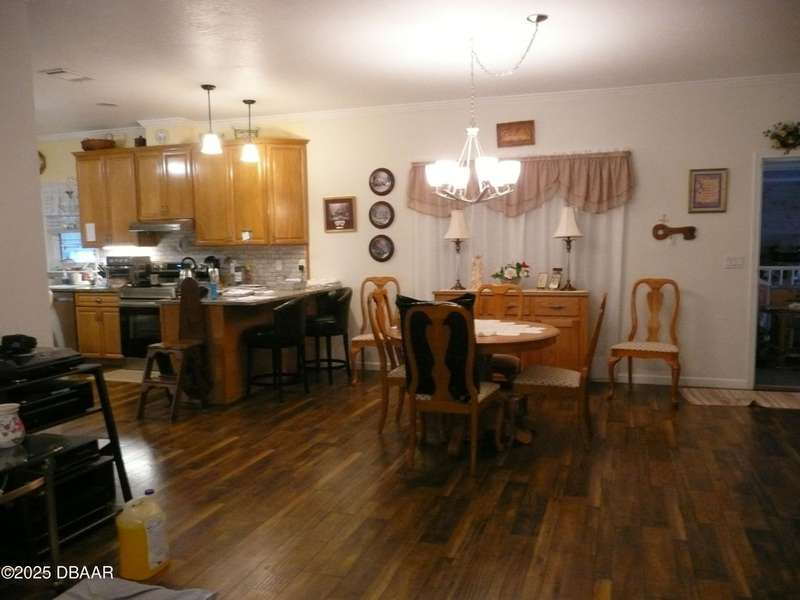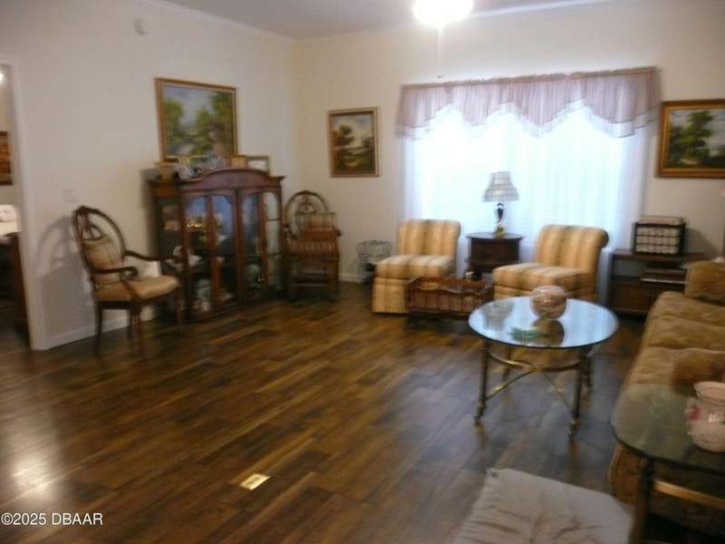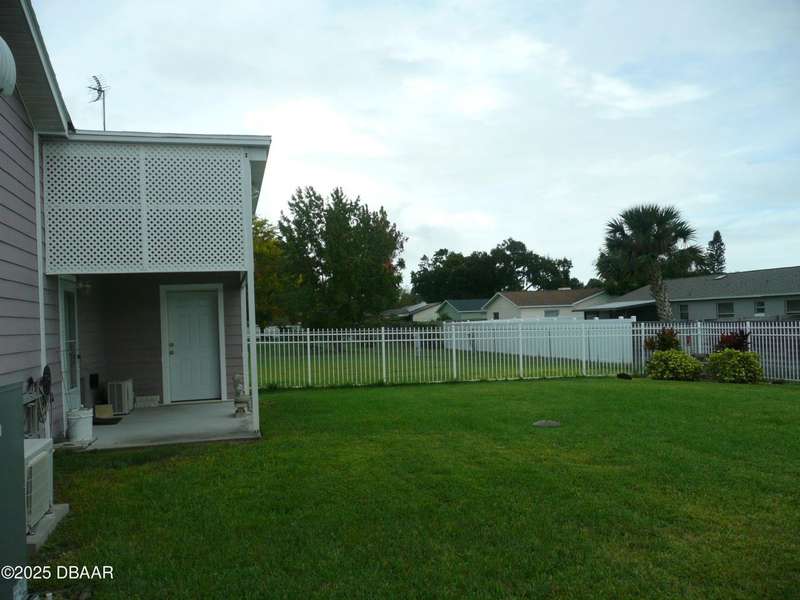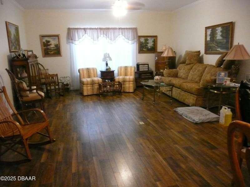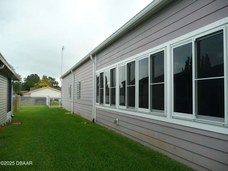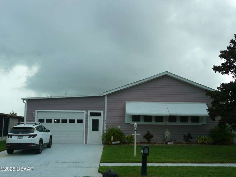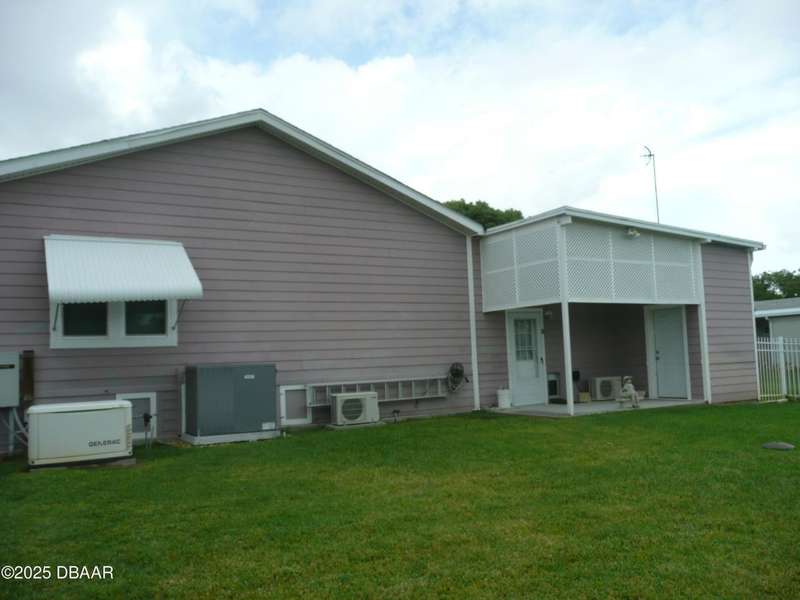 BELOW MARKET VALUE !! NO LOT RENT!! This is a beautiful custom built home placed on extra large fenced lot. Built in 2017 and is a 1 owner home with new HVAC, for main home including 2 smaller units for the garage and workshop. 2 garages will hold 3 cars plus some toys. The ceilings are high in garages plus a 2 car driveway. All windows are Dori hurricane windows. Another feature is the Generac Generator. Going into the spacious home you will see beautiful re-engineered wood flooring thru out the entire home except wet areas. This is an open floor plan is designed for handicap move ability.Kitchen has solid oak wood cabinets 42 inch tall, granite counters, and a 10 foot long buffet with glass doors. All appliances are stainless steel, only 3 years old, ceiling fans in all rooms. Nothing else in Port Orange like this, NO LOT RENT, move in ready no expense spared.