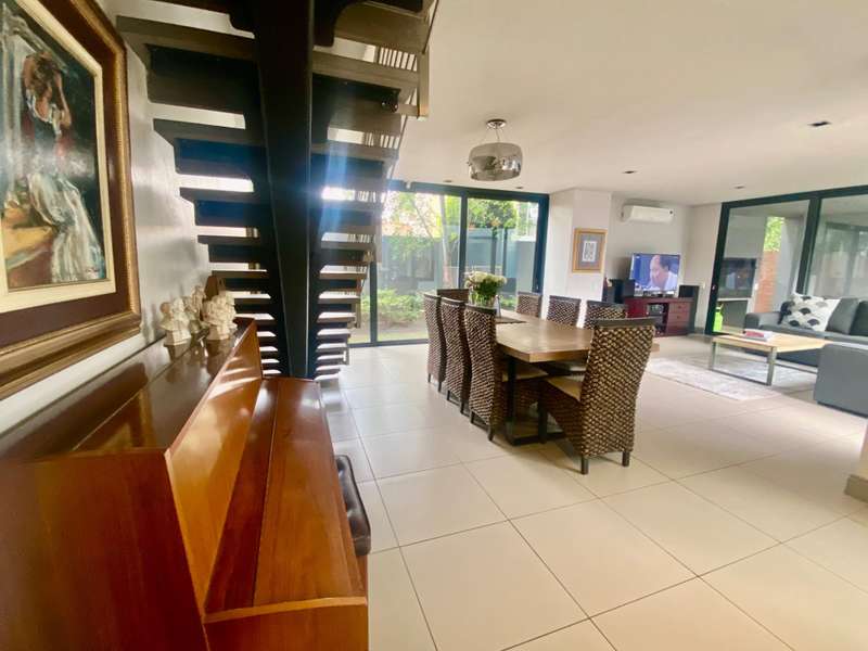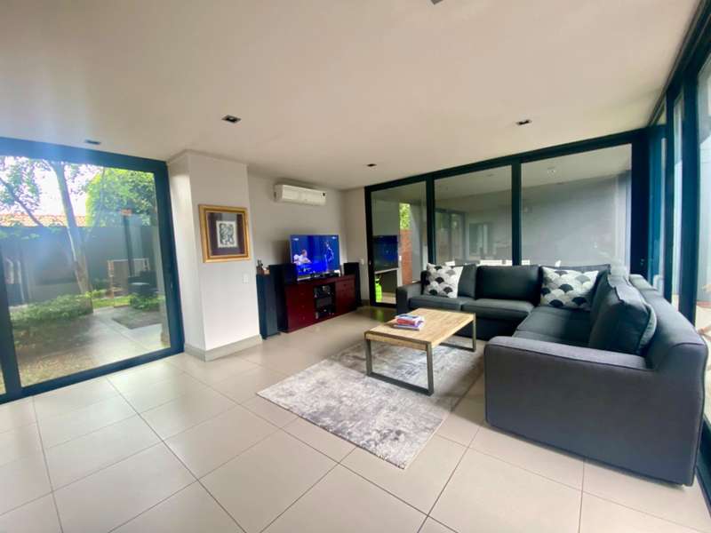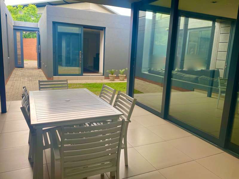 This unique, spacious, and low-maintenance townhouse features 4 bedrooms, each with an ensuite bathroom It provides a luxurious lifestyle within a small estate of 14 units, located in a serene, tree-lined area in the center of Waterkloof Ridge. The houses are contemporary, all completed with high-end finishes. A cozy courtyard and garden featuring a shaded patio for outdoor dining and entertaining. A sanctuary for individuals seeking a simplified and minimal lifestyle with luxurious detail.