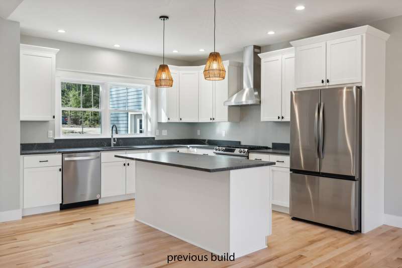 This modern executive ranch is set on a spacious, level lot and offers the perfect blend of style and comfort. Designed with an open-concept layout, the home showcases elevated custom finishes throughout. Step into the chef-inspired kitchen featuring quartz countertops, custom cabinetry, and white oak engineered hardwood floors. The main living area boasts soaring cathedral ceilings, creating an airy and inviting atmosphere that's ideal for both everyday living and entertaining.