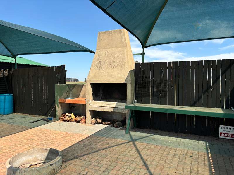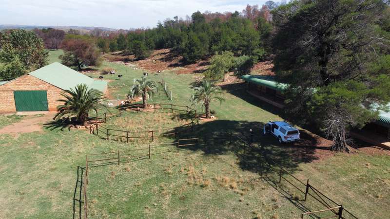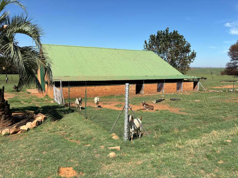 Extremely neat equestrian or game farm properly fenced with neat entrance and fences. Two earth dams with wendy houses of which one is converted into a bathroom and a deck with braai area. Further it is complemented with a sturdy shed of 280 sq meter, staff accommodation on the one side and goat/sheep pen on the opposite side. There is also very neat and well-built brick horse stables, a strong equipped borehole with Escom power. only 1.3 km dirt road and 18 Km. good tar road to the town of Bronkhorstspruit with all necessary amenities. The game, tractor and implements can be negotiated separately.