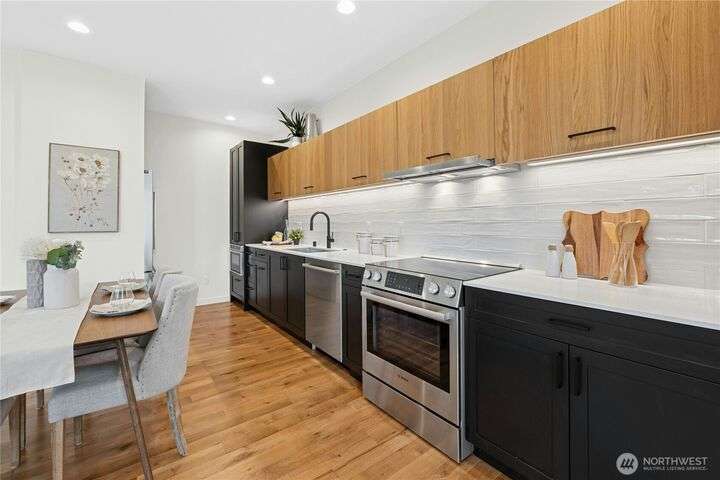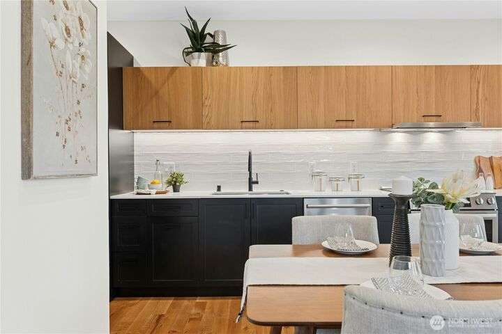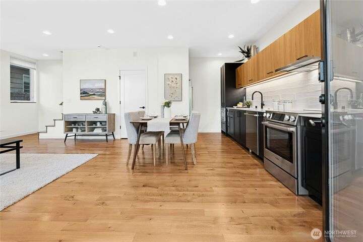 Experience modern living in this contemporary condo, set on a tree-lined street in a desirable residential neighborhood. Built with quality construction & thoughtful design, this home offers the feel of a single-family residence with the ease of condo living. The main living area is conveniently located on the first floor, while bedrooms above provide comfort & privacy. A designated laundry room adds everyday convenience, and mini-splits on every level ensure year-round comfort. Enjoy sweeping views of the city skyline, Puget Sound, and even the Space Needle fireworks from the rooftop deck. With only six homes in the community, you’ll appreciate the sense of space & exclusivity. Off-street parking with EV charging completes this rare find.