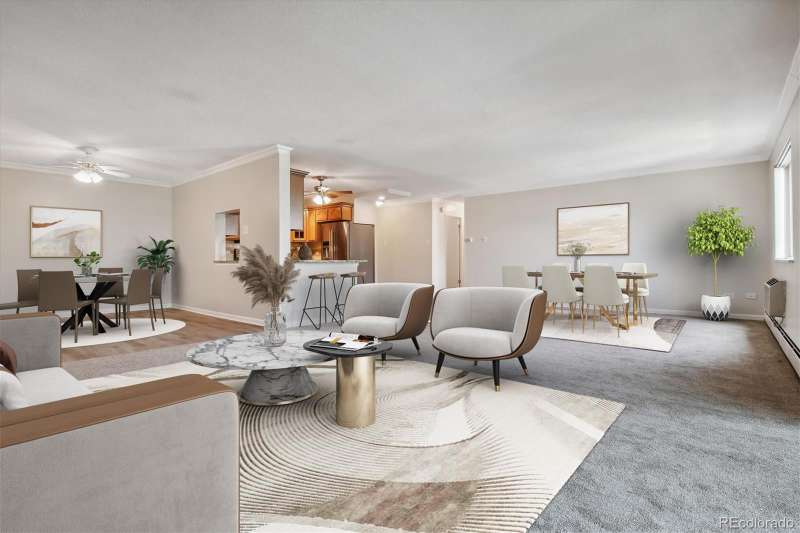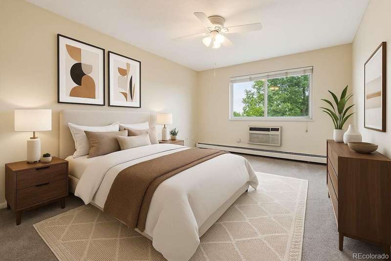 Great Price! Seller says SELL! Great Price for a 1550sf condo! New Updates Included! Rare opportunity to own a great floorplan that is updated & move right in condition! This condo includes 2 bed/2 bath, oversized living/dining room, multi-purpose flex bonus room. Updated kitchen w/ginger stained cabinets, granite slab countertops, tile backsplash, barstool seating, and stainless appliances. NEW updated bathrooms w/white shaker cabinets, quartz tops, & new fixtures. Detached garage w/opener! Primary bedroom oversized w/walk-in closet & en-suite 3/4 bathroom. Mix of LTV vinyl & newer carpet flooring. 3 wall a/c units included- 2 are brand new digital w/remote! Lanai w/Vinyl slider door, tile floor, & NEW Double Pane Vinyl glass/screen enclosure. All new interior 2 tone paint thru-out. Additional bonus storage room in building- right down the hall from condo! Spacious home w/many great features- worth checking this one out! **Windsor Gardens is Colorado's Largest Age 55+ Active Adult Living Condo Community. Did you know? Monthly HOA Dues include annual property taxes! And heat, water, sewer, trash, round-the-clock patrolling community responders, full time onsite association management, grounds/building maintenance, and activities department. Enjoy clubhouse amenities such as fitness center, indoor/outdoor pools, hot tub, sauna, billiards, library, craft rooms for ceramics, sewing, woodworking, and 9 hole par 3 golf course and onsite restaurant both open to the public. Stay engaged with a wide array of activities, clubs, and events scheduled every month. Additional features include garden plot program, private walking trail and nature preserve, and RV/Boat storage. The Highline Canal runs full length along south side of the complex. RTD Bus Stops located thru-out the community. FHA/VA approved. Close to restaurants, stores, shopping…Minutes to Lowry, Hwy 225, Cherry Creek…Easy access to DIA and downtown. Come see for yourself what Windsor Gardens has to offer. 2021**