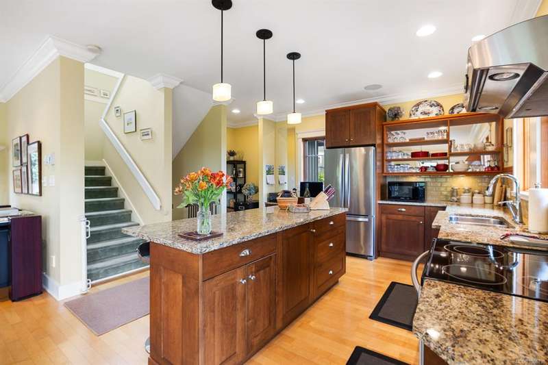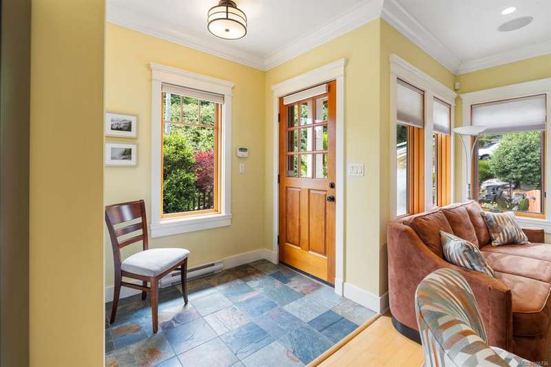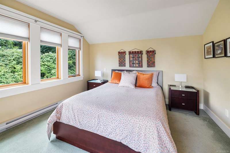 Absolutely perfect and move-in ready, this contemporary home offers stunning ocean views and a desirable location in the friendly, residential enclave of Bishop’s Green—just minutes from town. Immaculate and light-filled, the 2,083 sq ft layout spans three levels, featuring two spacious bedrooms each with their own ensuite baths. The upper-level primary suite includes a charming ocean-view veranda—ideal for morning coffee. Quality finishings throughout include a gourmet kitchen, rich wood trim and mouldings, and banks of picture windows that capture the coastal setting. The lower level offers a welcoming retreat for guests, while the professionally landscaped grounds feature natural rock walls, covered sun deck, private patios, and a storybook front porch. An attached garage and private driveway add to the convenience. New roof in 2024. An exceptional opportunity for those seeking a low-maintenance, easy-care lifestyle in a “like new” view home!