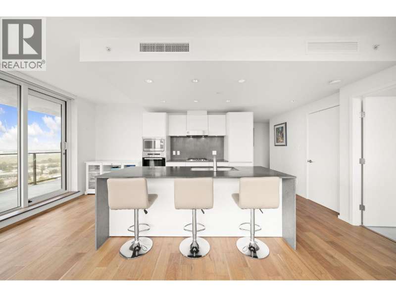 Welcome to "GRANVILLE AT 70TH", this corner-unit 2-bed, 2-bath home offers nearly 915sqft of interior living space with incredible south-east 270-degree panoramic views of the mountains, city and water. BONUS: 2 SIDE-BY-SIDE parking and 2 SIDE-BY-SIDE lockers. Floor-to-ceiling windows for maximum natural light, while air conditioning, hardwood flooring, Nuheat bathroom floors, and premium kitchen appliances. Residents enjoy 24-hour concierge service along with impressive amenities: rooftop gardens, library, lounge/study areas, gym, steam room, and sauna. Conveniently located above Safeway and just steps to shops, banks, restaurants, and transit, this home places everyday essentials right at your door. Families will also appreciate being a short drive to Dr. R.E. McKechnie Elementary and Magee Secondary. Don´t miss this opportunity to own of the best value 2-bedroom condos in the Vancouver West´s corridor. (id:58403)