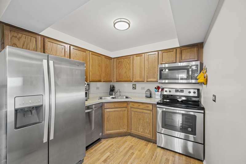 Welcome to Forest Villa Condominiums, where comfort, convenience, and resort-style amenities come together in the award-winning Lyons Township School District. This beautifully maintained 2-bedroom, 2-bath condo with premium garage parking space, offers a thoughtful and comfortable layout. The large primary suite includes abundant closet space and a full private bath, while a second full bath adds everyday functionality. The compact yet efficient kitchen flows into the generous family room, making it ideal for both daily living and entertaining. Sliding doors lead to a newer private balcony, your perfect spot for morning coffee or evening relaxation. Enjoy peace of mind with recent updates including newer carpet, newer stainless steel appliances, brand-new AC (installed June 2025), and a new building roof. An in-unit washer and dryer adds everyday convenience. Forest Villa offers an impressive list of amenities: a welcoming lobby to greet your guests, a sparkling outdoor pool with a resort-like recreation area, gas grills, communal bathrooms with showers, a fully equipped workout facility, and an additional laundry area. The covered front entry makes for easy drop-offs and this unit comes with the most desirable indoor garage parking space in the building and one assigned space outside. With maintenance-free living, resort-style perks, and an unbeatable location, this is more than a condo it's a lifestyle. Don't miss your chance to call Forest Villa home!