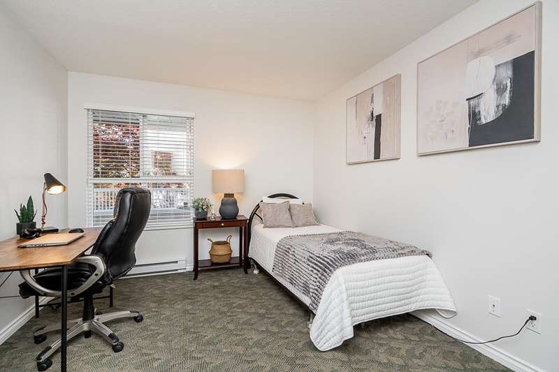 Let this apartment welcome you home! It is hard to find apartments with 1,165 square feet - there is a lot of room in this two-bedroom, two-bathroom home. This open-plan space is freshly painted, with lots of natural light and a private view over the gardens in the courtyard. Flex space is currently used for storage and can even accommodate a freezer, but many people use it as a den or office space. THE BIRCHES is a well-run building in a central location - walk to transit, shopping, recreation, and access all major commutes.