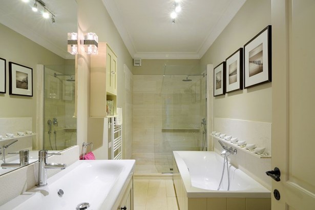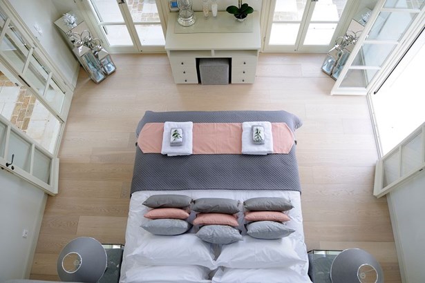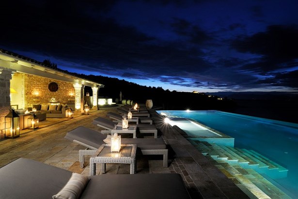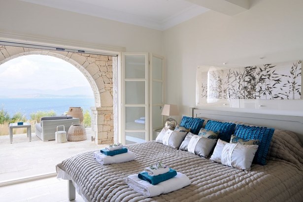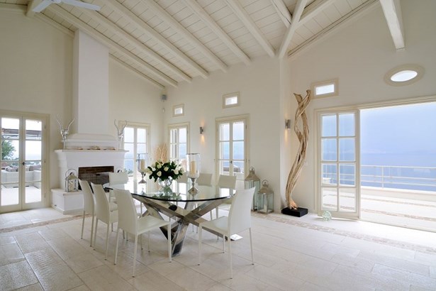 This grand villa features spacious living areas, a luxurious master suite with a Jacuzzi bath, and an outdoor Jacuzzi with stunning sea views. Additional amenities include a cinema room, gym, sauna, steam room, and a large pool house with a swimming pool. The villa offers flexible accommodation, with the lower level providing a family suite option.
